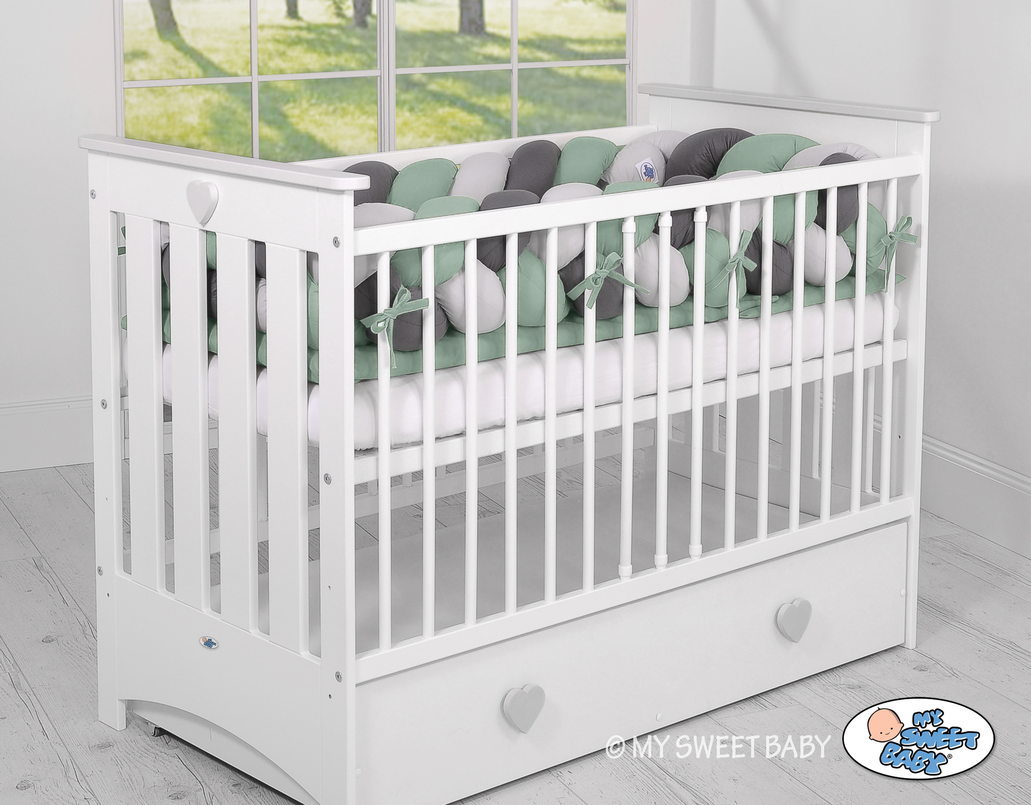 De bumper zorgt ervoor dat de handen en voeten van je baby niet vast komen te zitten tussen de spijlen en zorgt ervoor dat de baby zijn hoofd en lichaam niet tegen de randen kan stoten. Met de meegeleverde katoenen strikken kan het nest aan de spijlen worden bevestigd.
