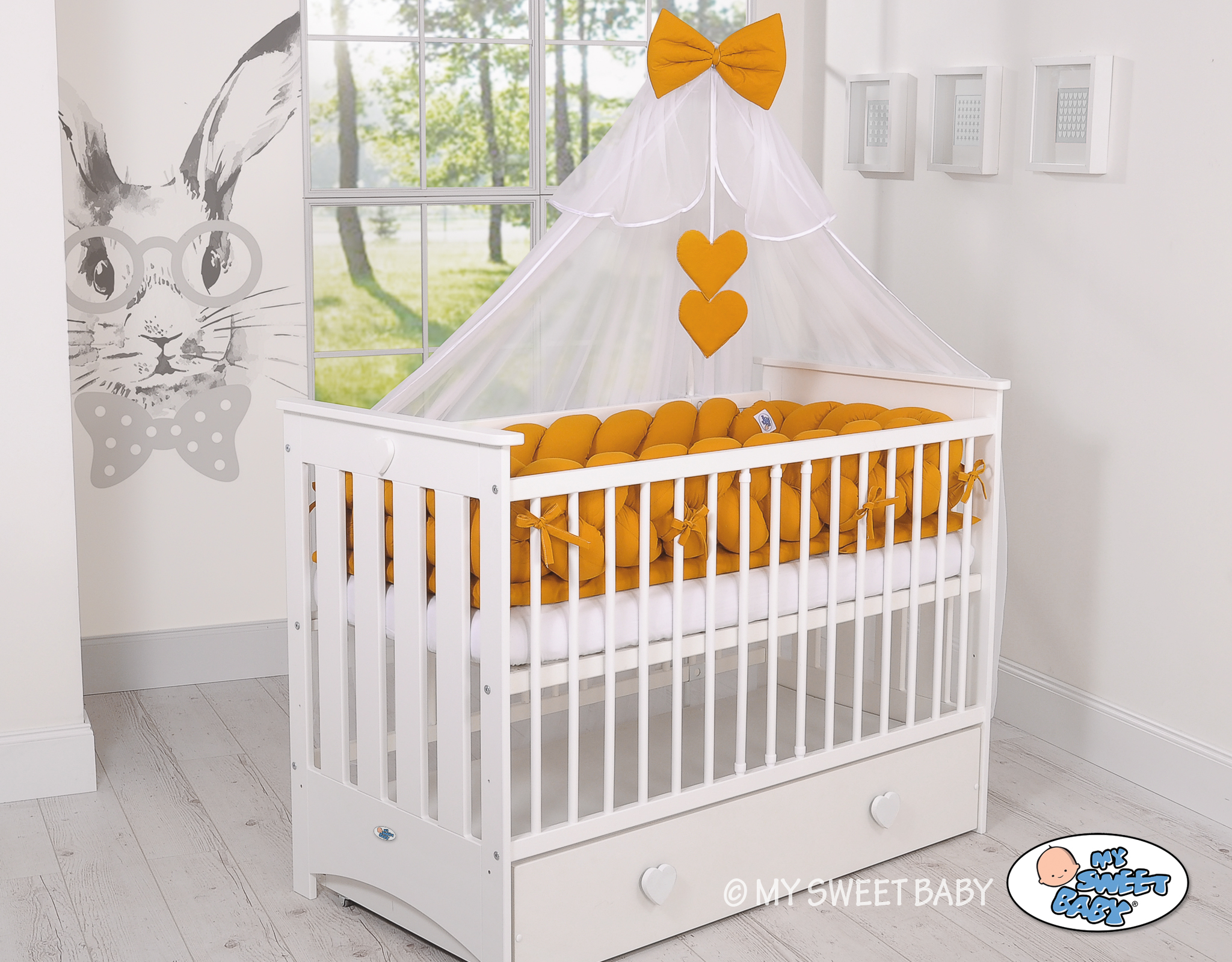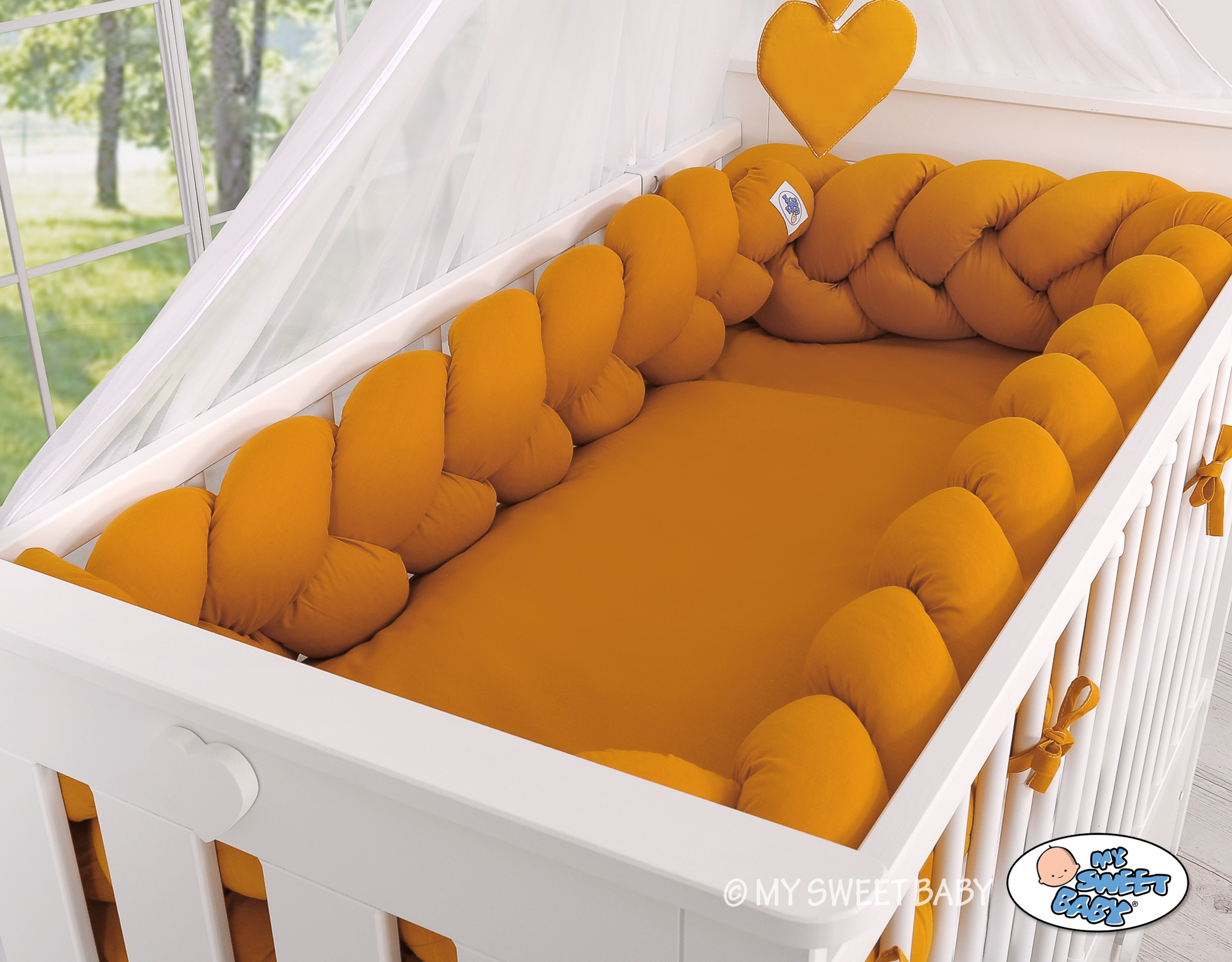 Kleinbaby.nl » Gevlochten Collectie » Gevlochten Bedbumper » Hoofdbeschermer Gevlochten 360cm Ledikant Honing Mosterd