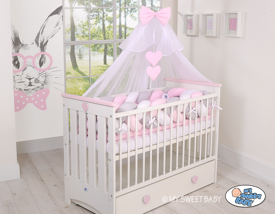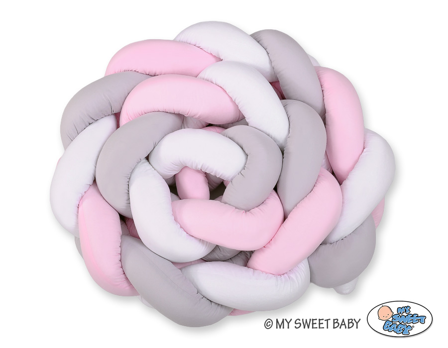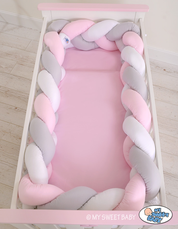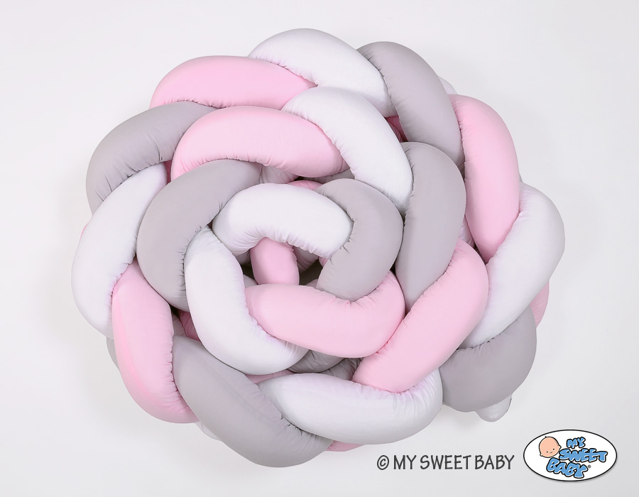 Prachtige, zachte, gevlochten bedbumper voor ledikant van 100% katoen. Kan aan de spijlen worden bevestigd.