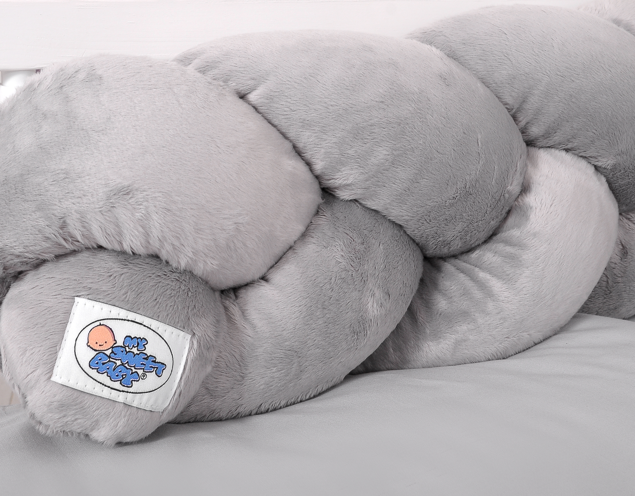 Kleinbaby.nl » Gevlochten Collectie » Gevlochten Bedomrander » Hoofdbeschermer Gevlochten voor Ledikant 180cm Grijs