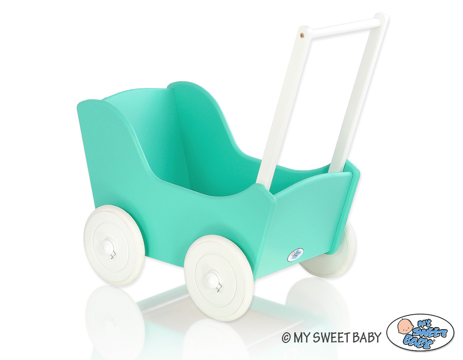 Kleinbaby.nl » My Sweet Baby » Houten Poppenwagen met Dekentje Mint Wit