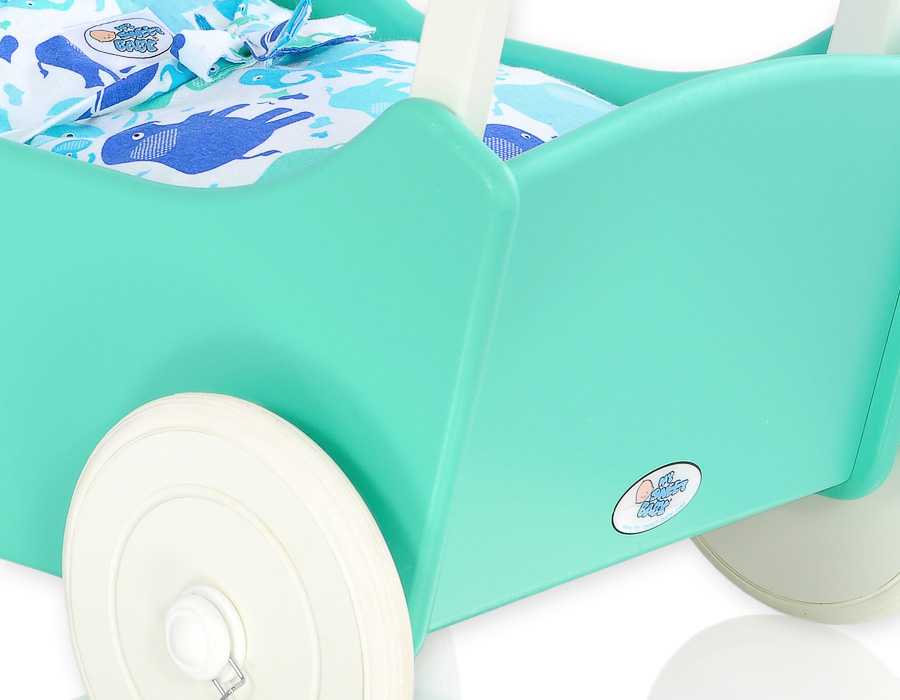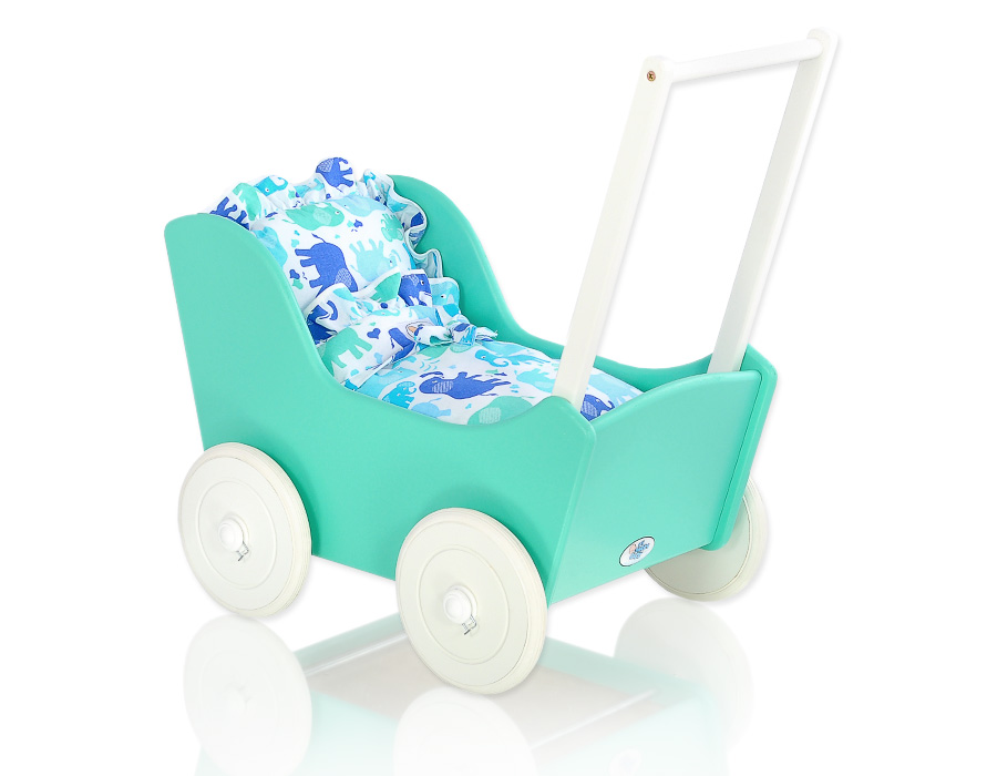 Kleinbaby.nl » Speelgoed Knuffels » Poppenwagens en Speelgoed » Houten Poppenwagen » Poppenwagen van Hout Mint » Houten Poppenwagen met Dekentje Mint Wit