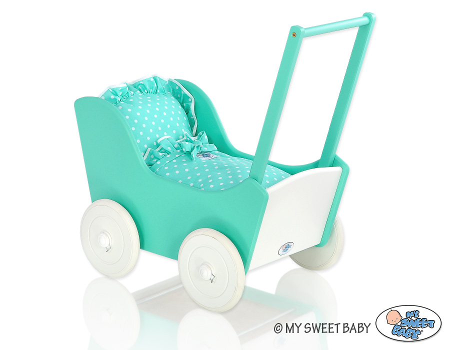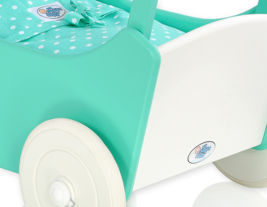 Kleinbaby.nl » Speelgoed Knuffels » Poppenwagens en Speelgoed » Houten Poppenwagen » Poppenwagen van Hout Mint » Houten Poppenwagen met Dekentje Mint Wit