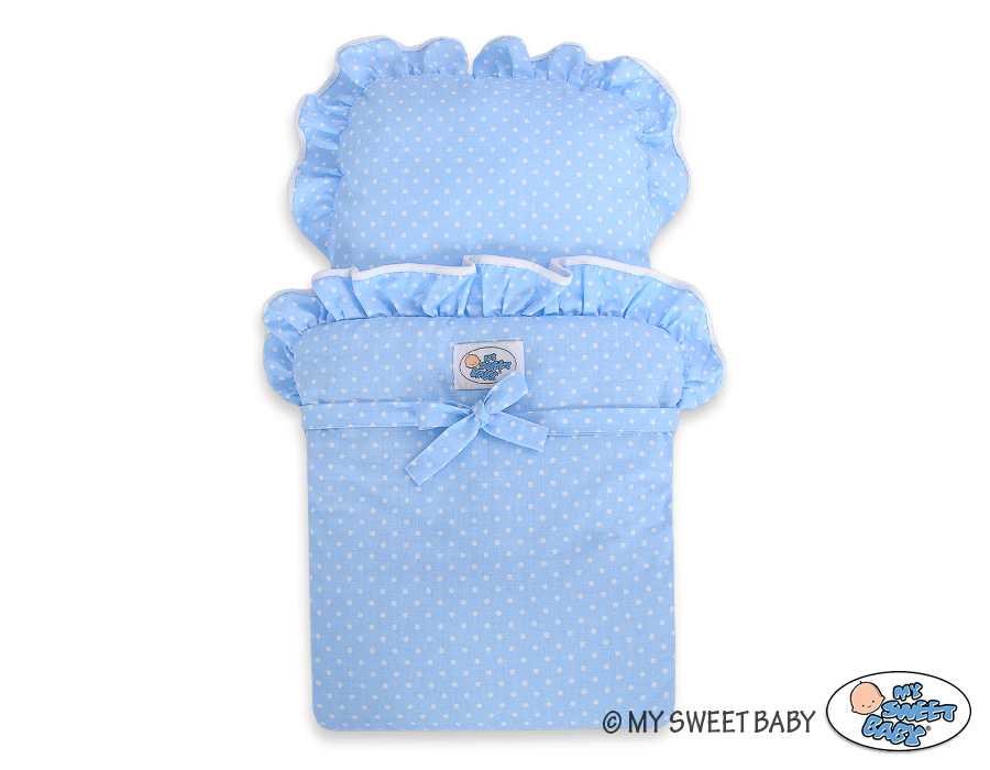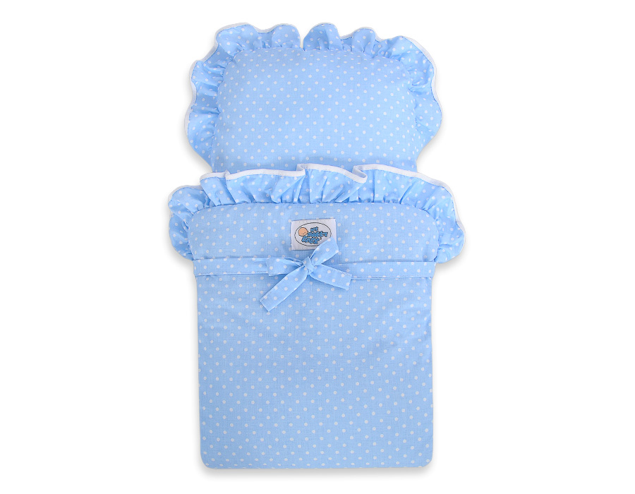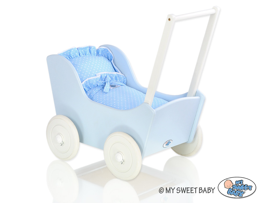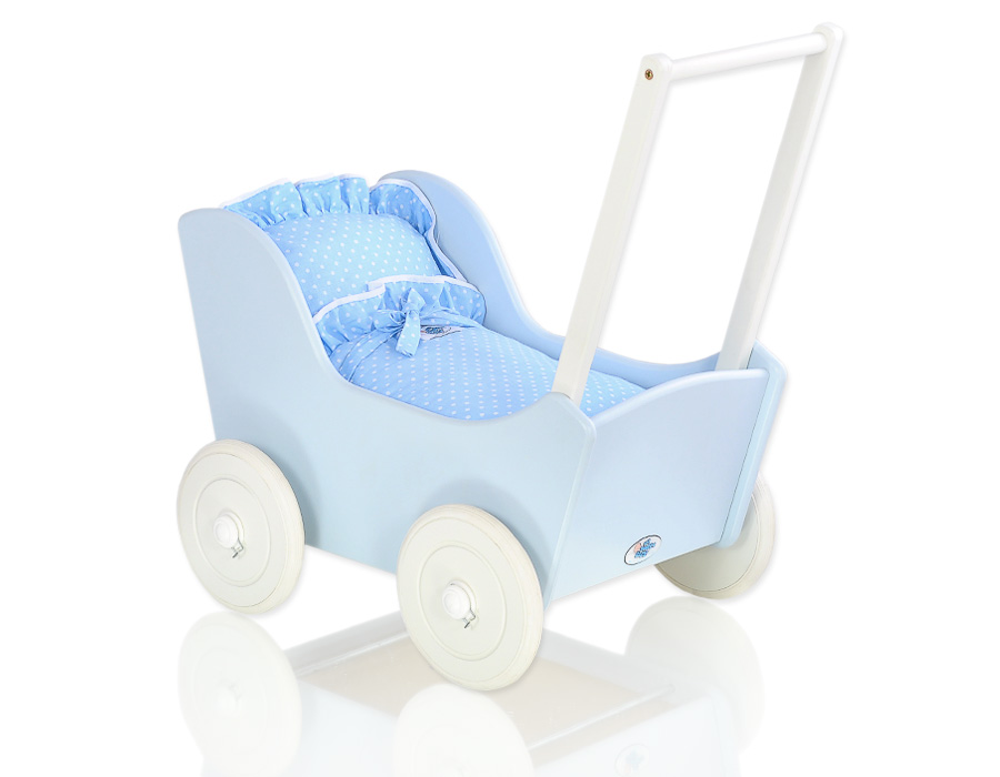 Kleinbaby.nl » Speelgoed Knuffels » Poppenwagens en Speelgoed » Houten Poppenwagen » Houten Poppenwagen Blauw » Houten Poppenwagen met Dekentje Wit Blauw