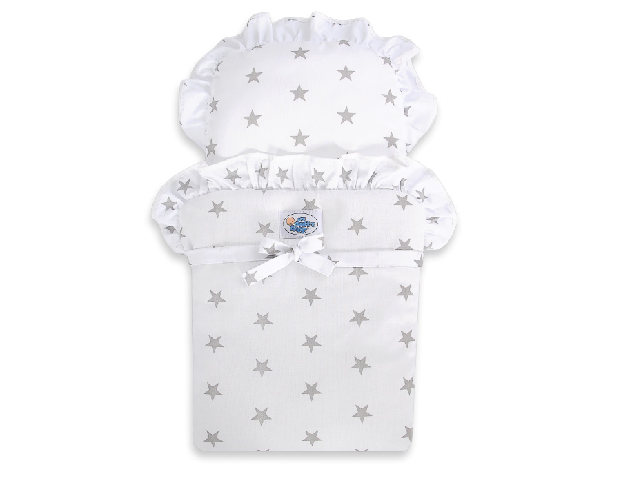 Kleinbaby.nl » Speelgoed Knuffels » Poppenwagens en Speelgoed » Houten Poppenwagen » Houten Poppenwagen Grijs » Houten Poppenwagen met Dekentje Wit Grijs