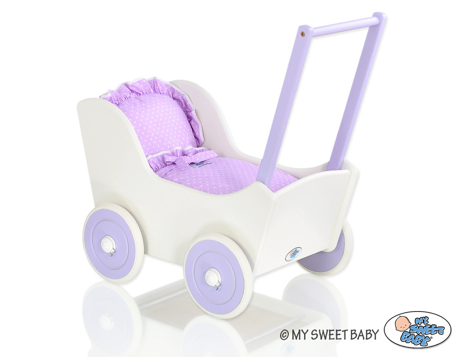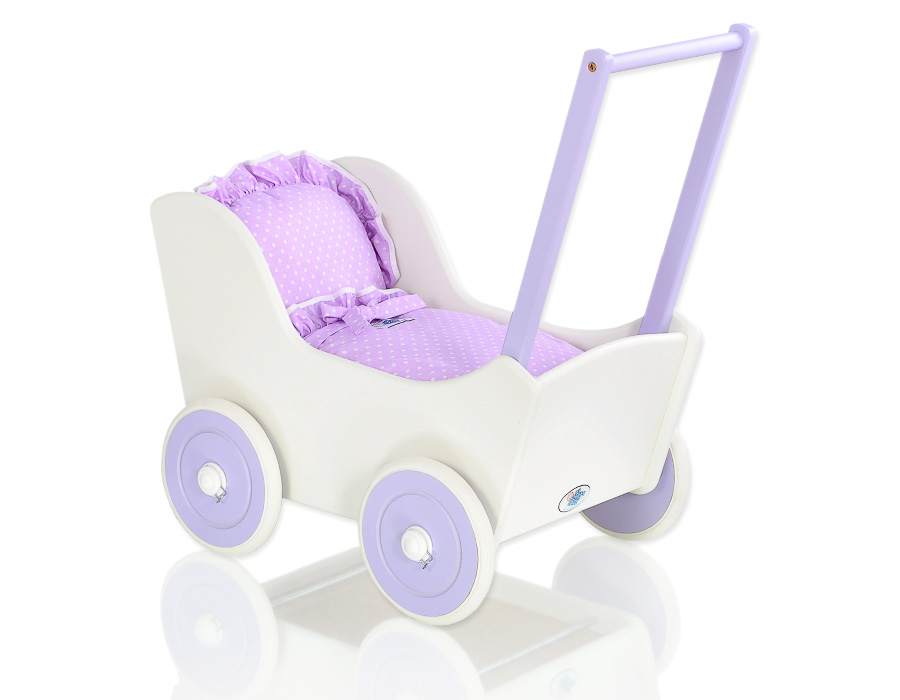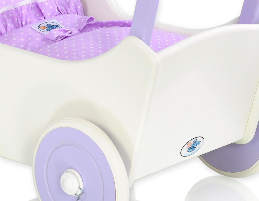 Kleinbaby.nl » Speelgoed Knuffels » Poppenwagens en Speelgoed » Houten Poppenwagen » Poppenwagen van Hout Purper » Houten Poppenwagen met Dekentje Wit Purper