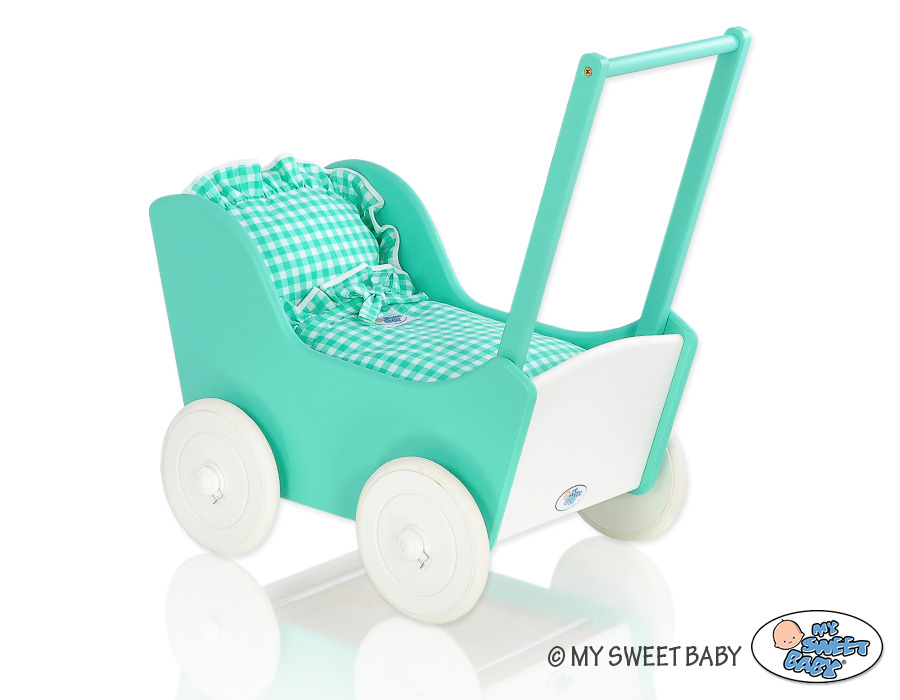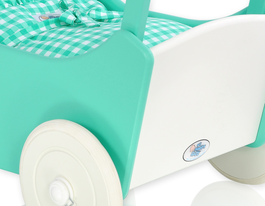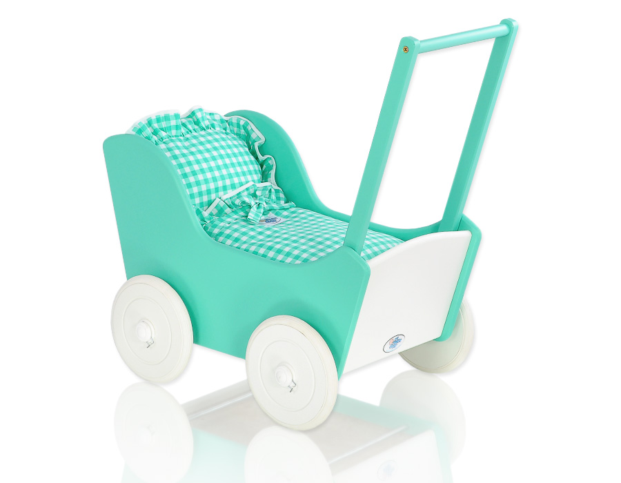 Kleinbaby.nl » Speelgoed Knuffels » Poppenwagens en Speelgoed » Houten Poppenwagen » Poppenwagen van Hout Mint » Houten Poppenwagen Mint Wit