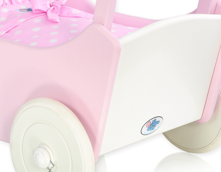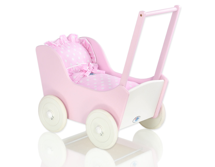 Kleinbaby.nl » Speelgoed Knuffels » Poppenwagens en Speelgoed » Houten Poppenwagen » Houten Poppenwagen Roze » Houten Poppenwagen Roze Wit