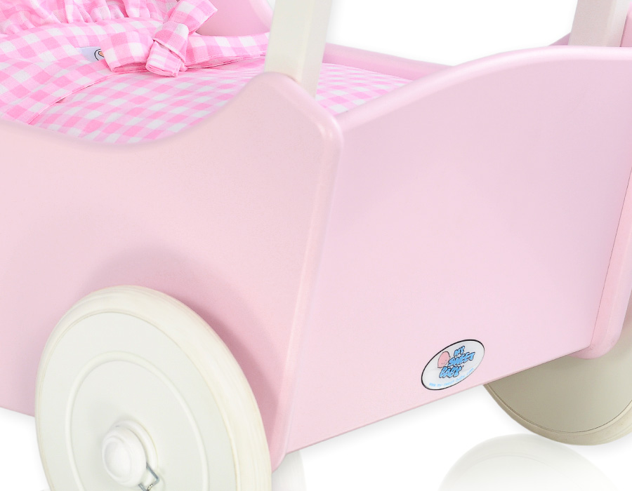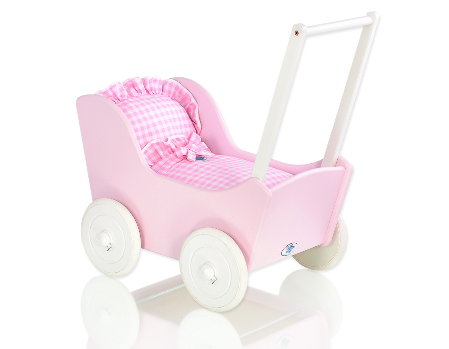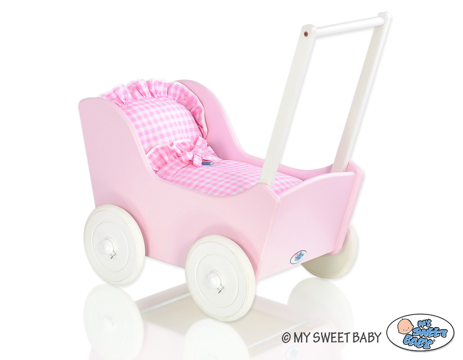Kleinbaby.nl » Speelgoed Knuffels » Poppenwagens en Speelgoed » Houten Poppenwagen » Houten Poppenwagen Roze » Houten Poppenwagen Roze Wit