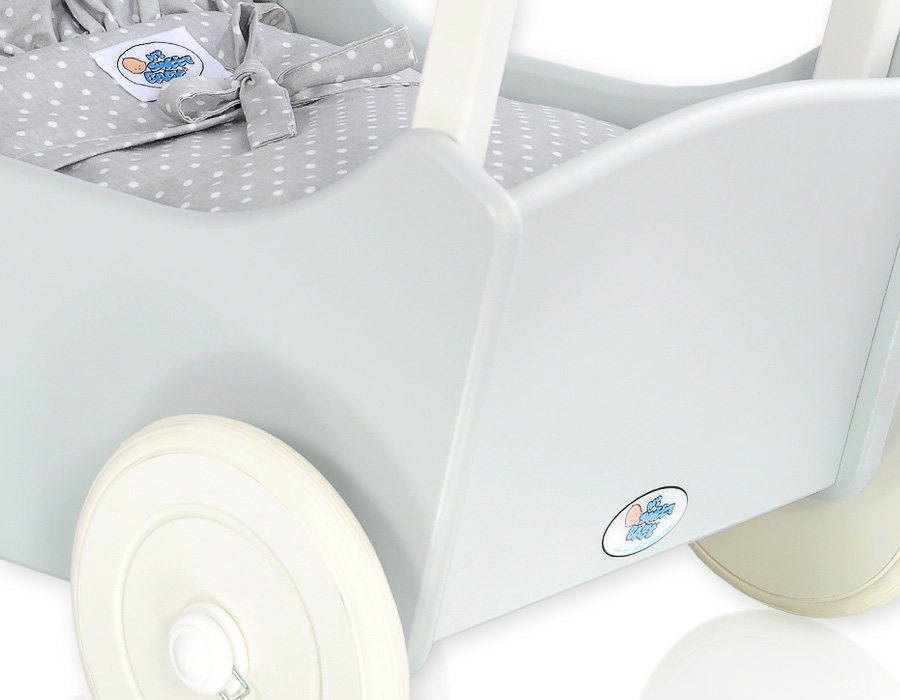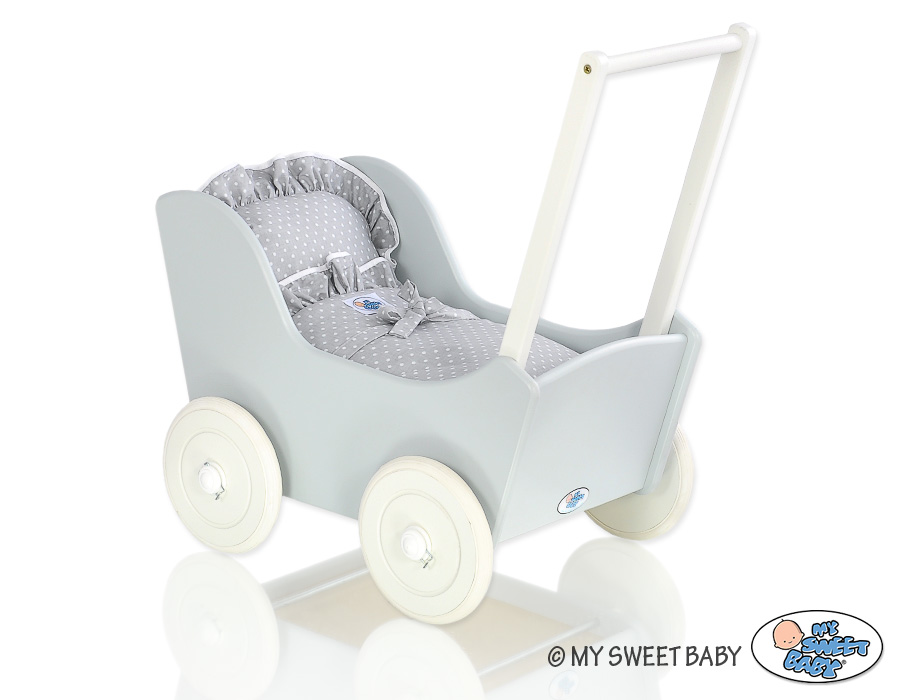 Kleinbaby.nl » Speelgoed Knuffels » Poppenwagens en Speelgoed » Houten Poppenwagen » Houten Poppenwagen Grijs » Houten Poppenwagen Wit Grijs