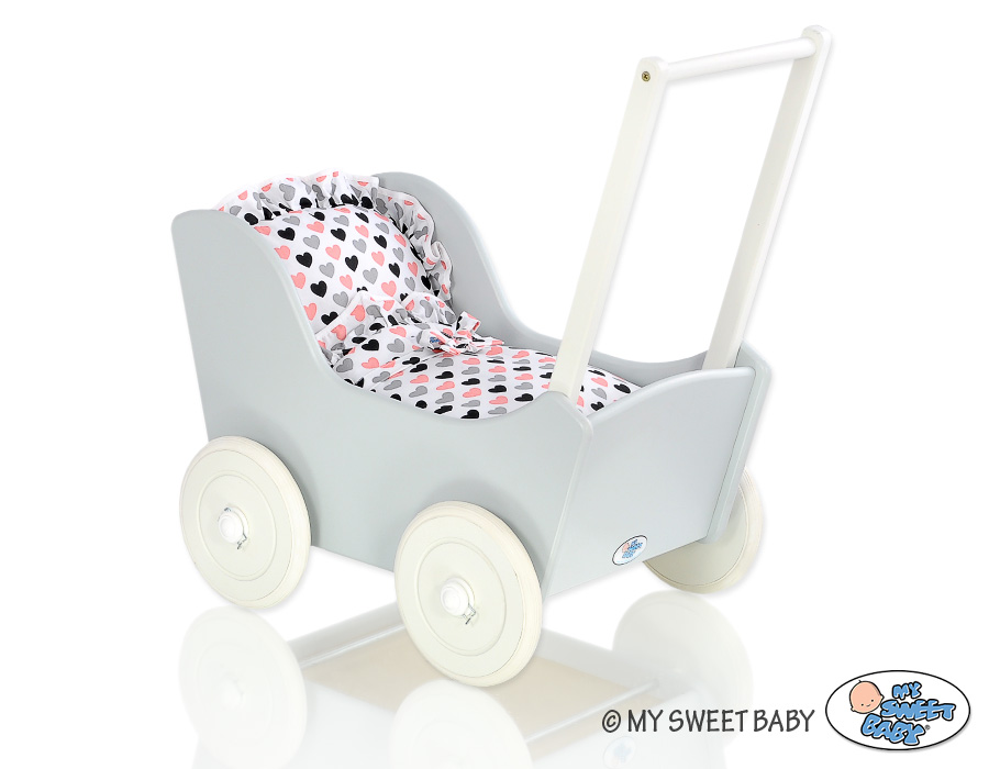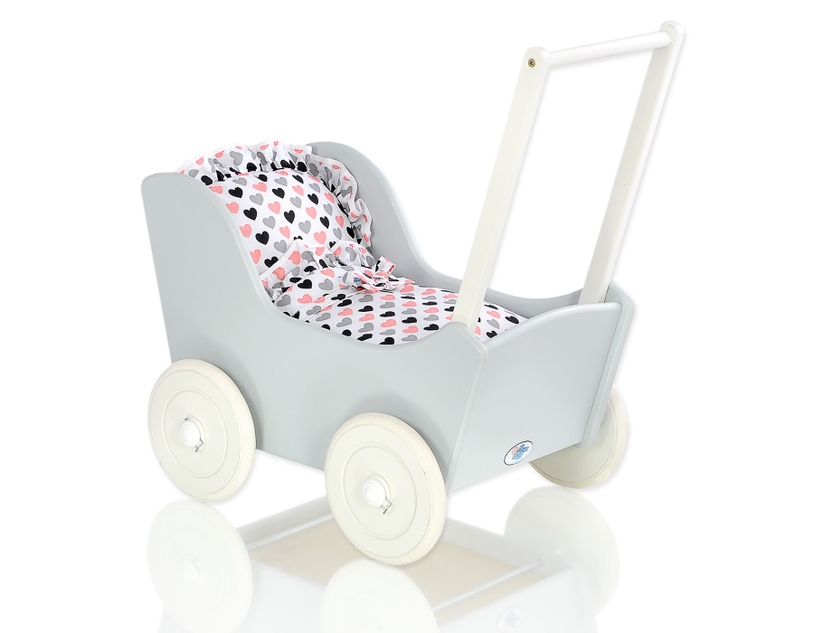 Kleinbaby.nl » Speelgoed Knuffels » Poppenwagens en Speelgoed » Houten Poppenwagen » Houten Poppenwagen Grijs » Houten Poppenwagen Wit Grijs