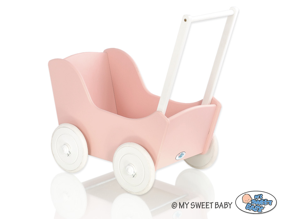 Kleinbaby.nl » Speelgoed Knuffels » Poppenwagens en Speelgoed » Houten Poppenwagen » Poppenwagen Hout Poederroze » Houten Poppenwagen Wit Poederroze