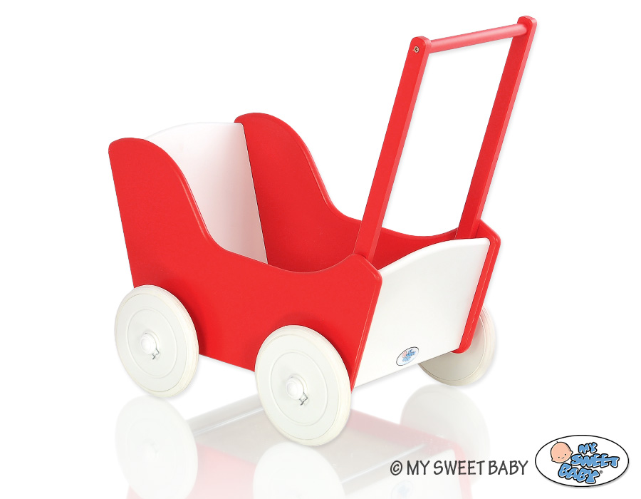 Kleinbaby.nl » Speelgoed Knuffels » Poppenwagens en Speelgoed » Houten Poppenwagen » Houten Poppenwagen Rood » Houten Poppenwagen Wit Rood