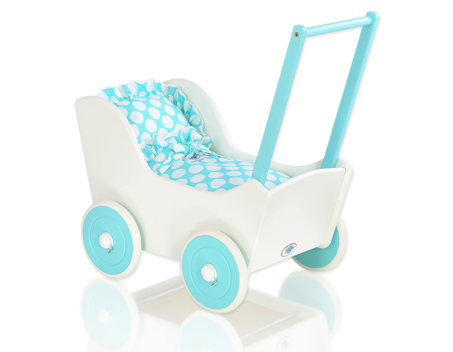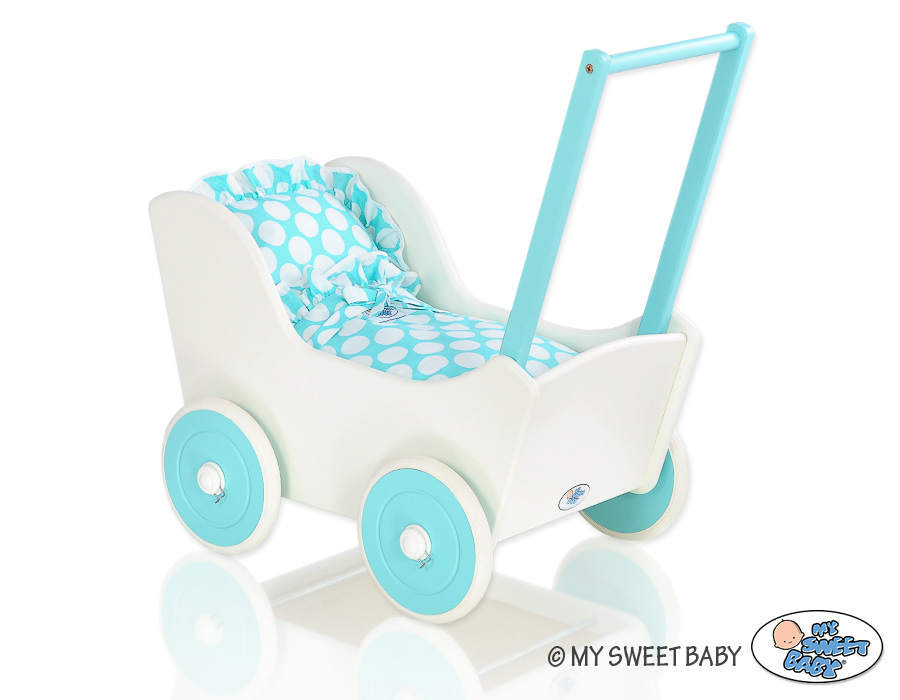Kleinbaby.nl » Speelgoed Knuffels » Poppenwagens en Speelgoed » Houten Poppenwagen » Houten Poppenwagens Turkoois » Houten Poppenwagen Wit Turkoois