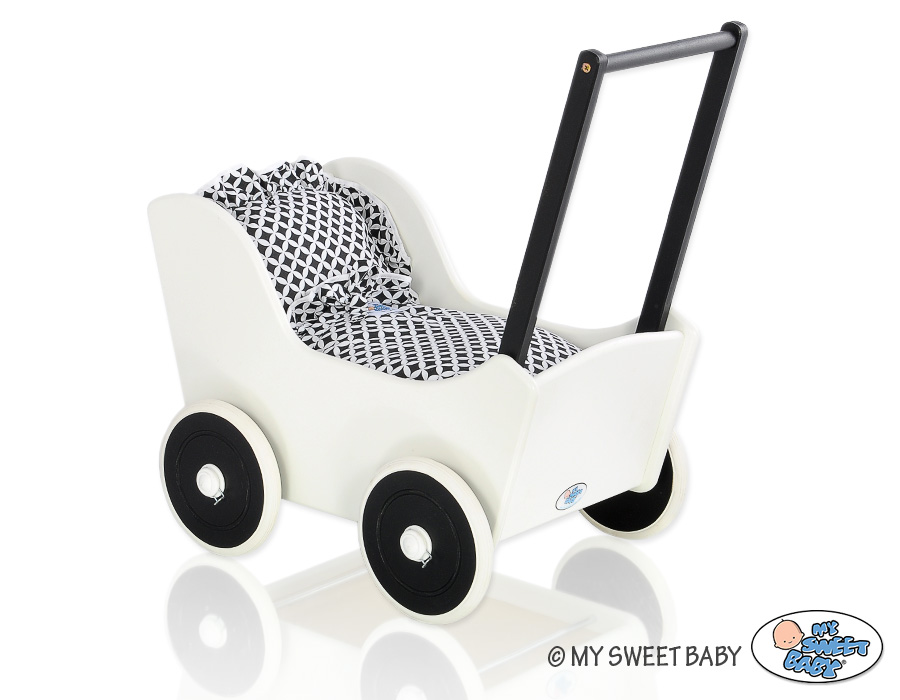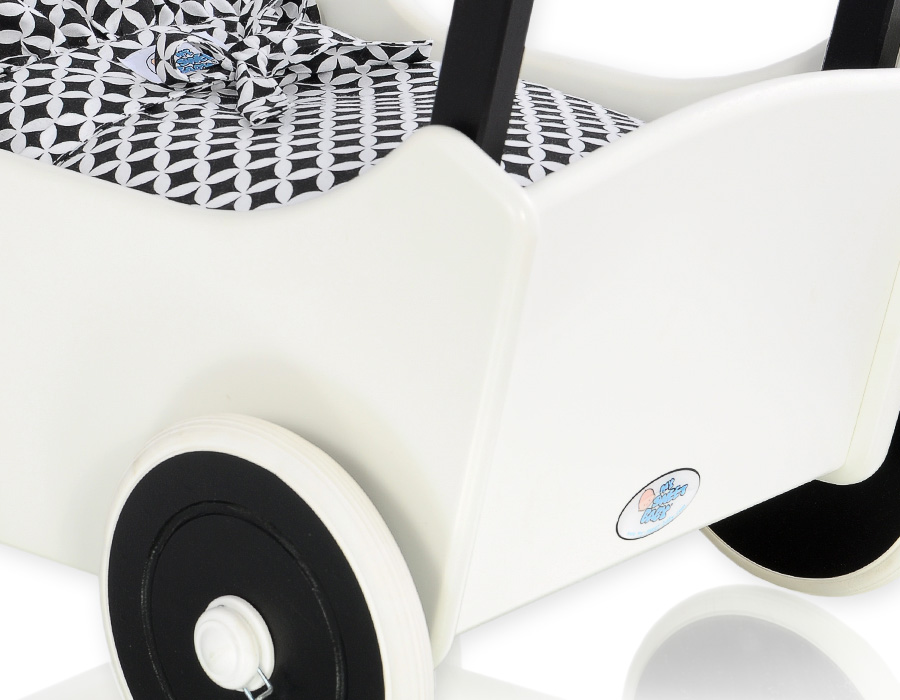 Kleinbaby.nl » Speelgoed Knuffels » Poppenwagens en Speelgoed » Houten Poppenwagen » Houten Poppenwagen Zwart en Wit » Houten Poppenwagen Wit Zwart