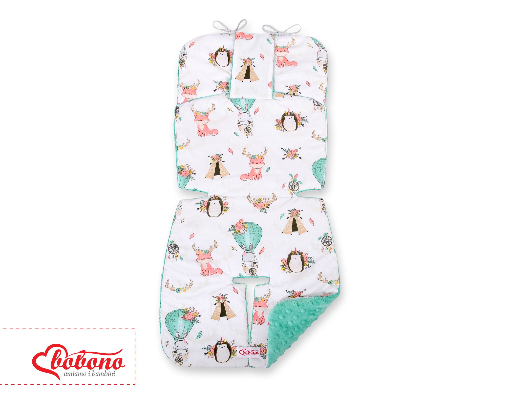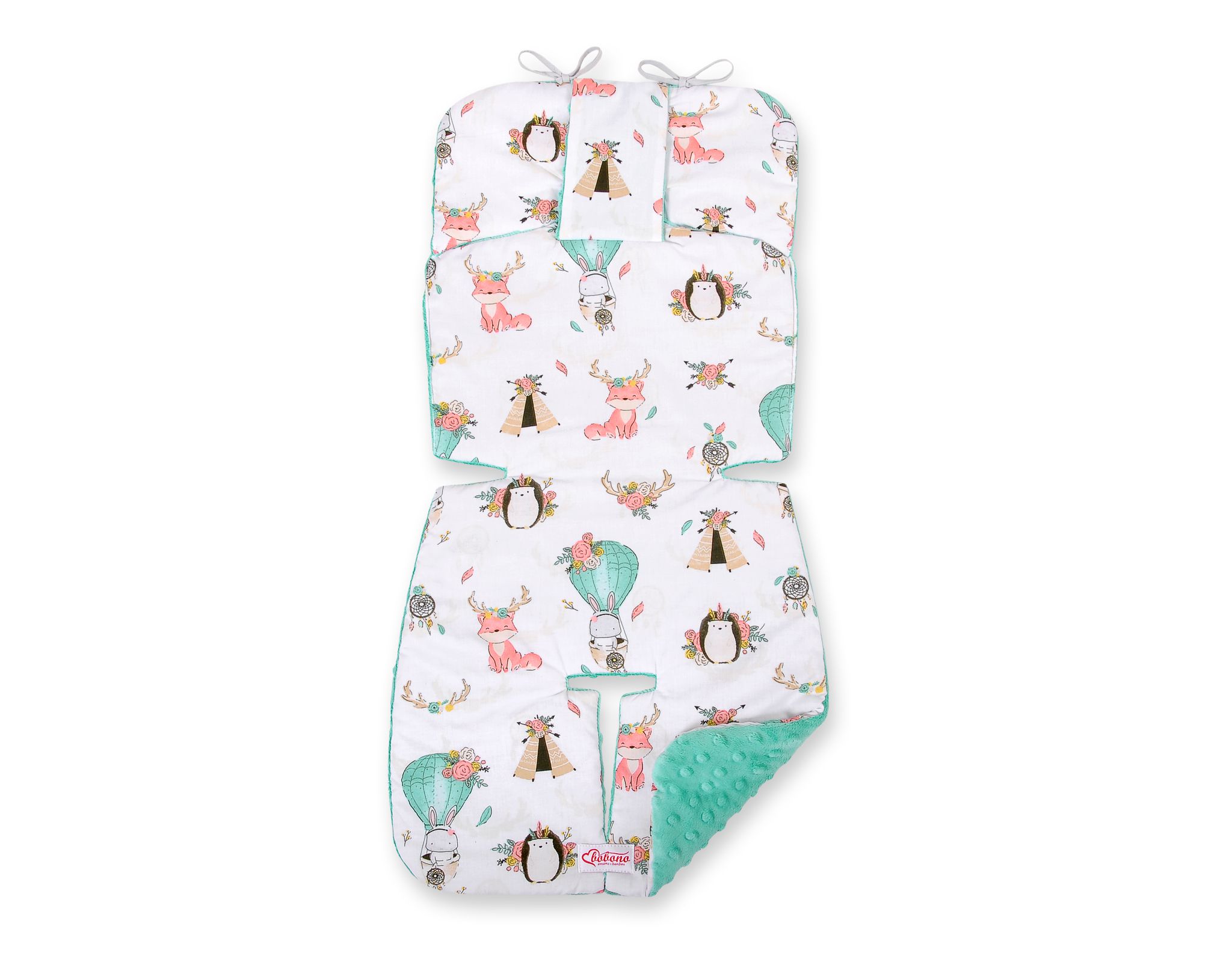 Een inlegkussen voor een kinderwagen - voelt zeer zacht en teder aan. Dubbelzijdig - gemaakt van 100% katoen en zacht aanvoelend 'minky' fleece.