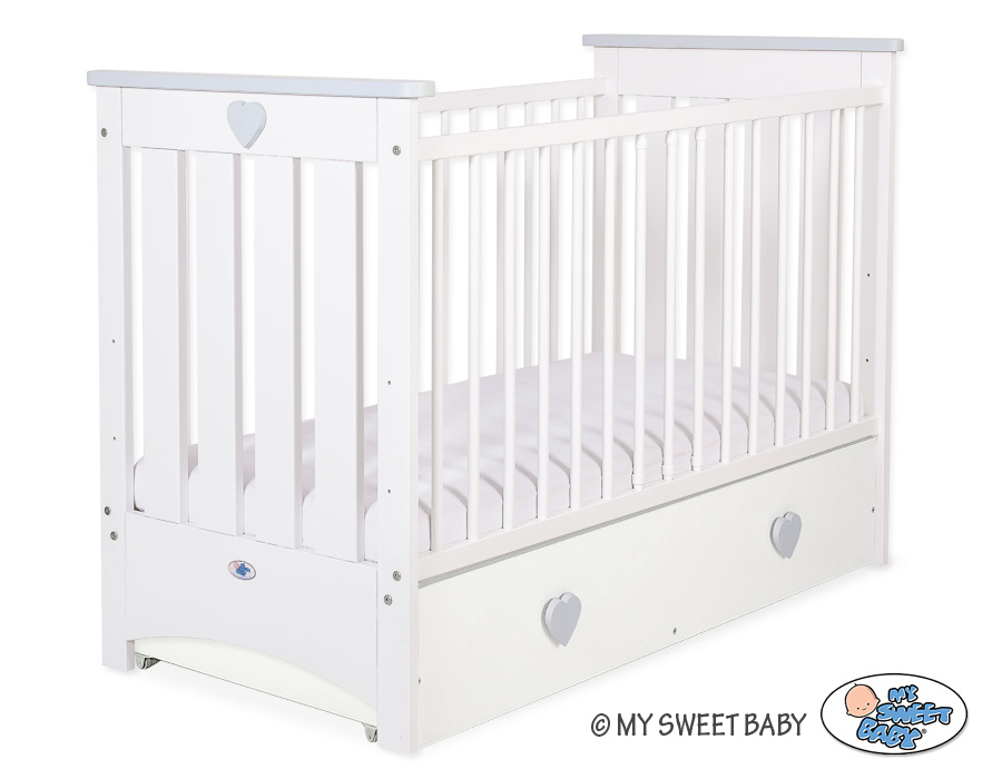 Kleinbaby.nl » Ledikanten 120x60 cm » Ledikanten 120x60cm met lades » Ledikant met Lade Collectie Lorenzo Wit » Kinderbed 120x60 cm met Lade - Lorenzo III MAXI Wit Grijs