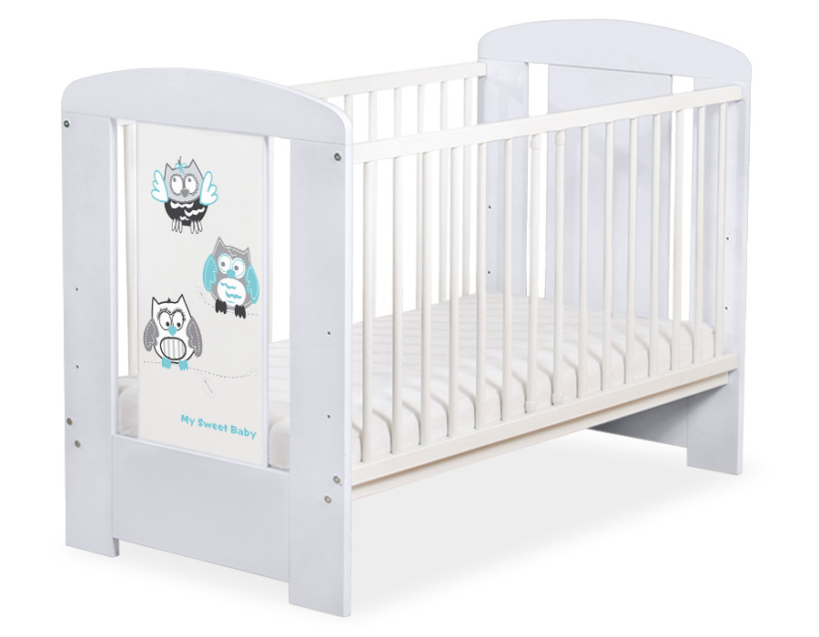 Kleinbaby.nl » Ledikanten 120x60 cm » Ledikant Collectie Owls » Kinderbed 120x60 cm - Owls Bigi Zibi & Adele Grijs Gelukkige Uilen