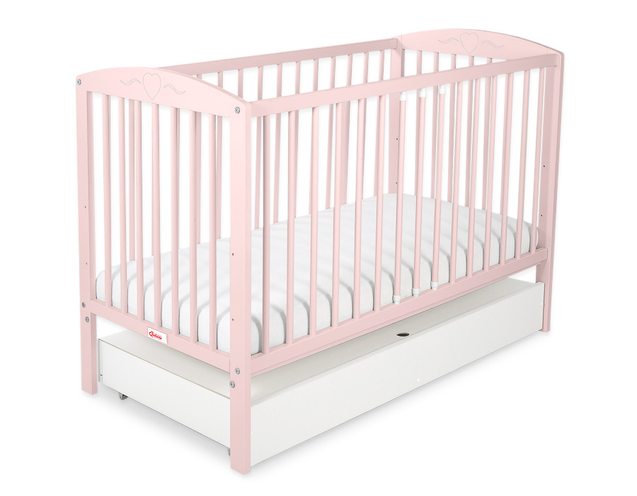 Een lade voor een ledikant van 120x60 cm met decoratieve, handgemaakte handvaten. Biedt meer ruimte voor beddengoed, speelgoed en andere benodigdheden.