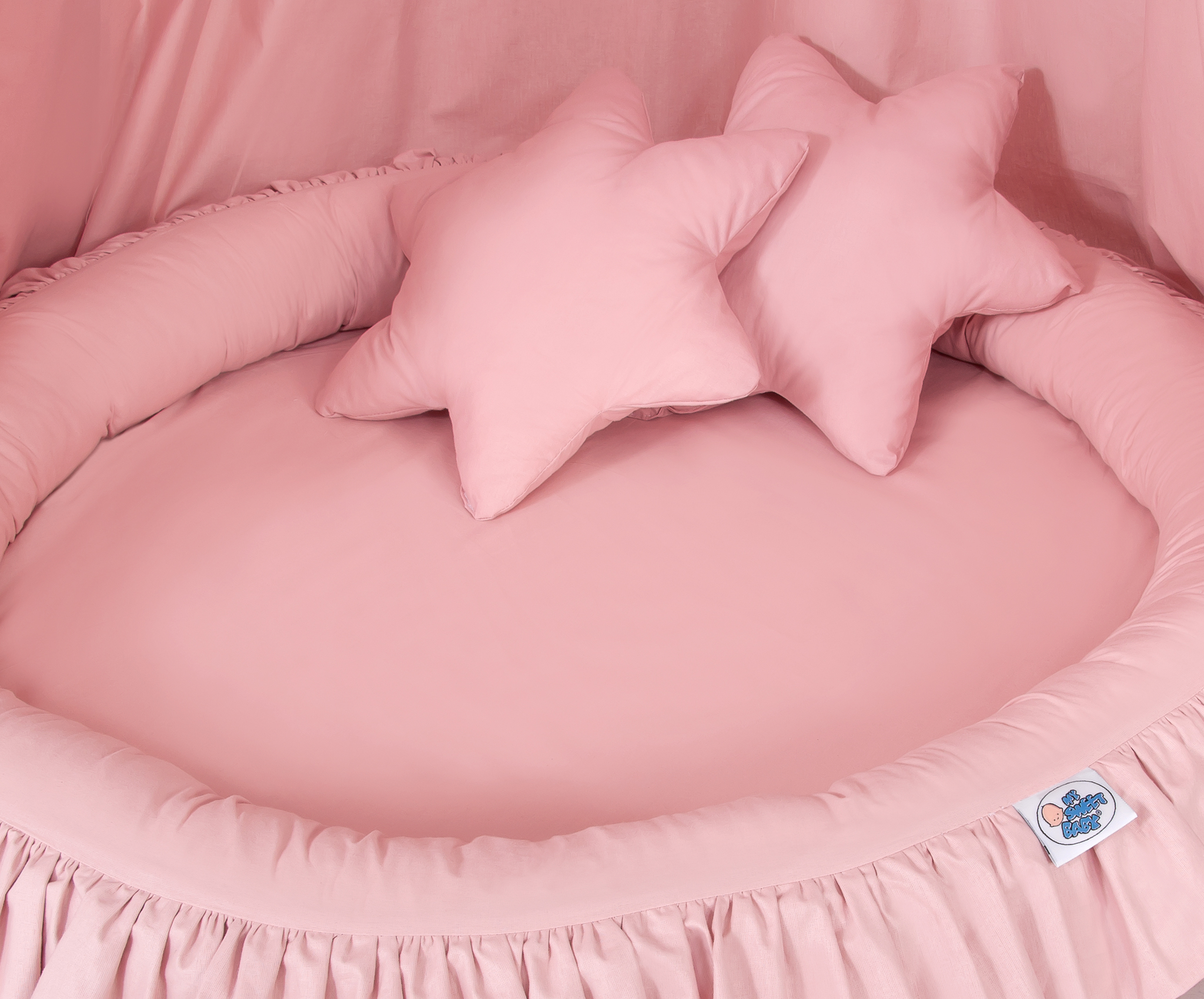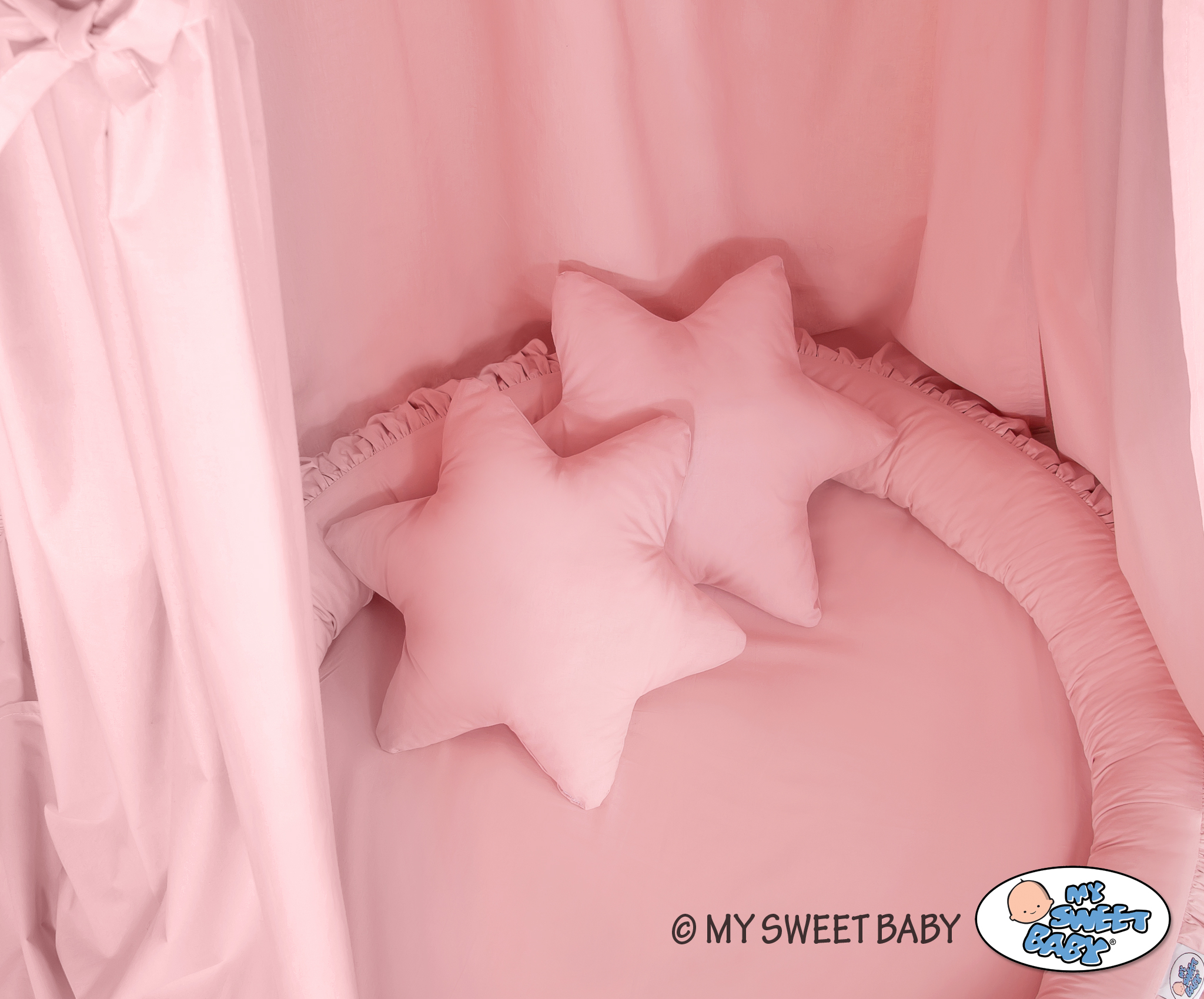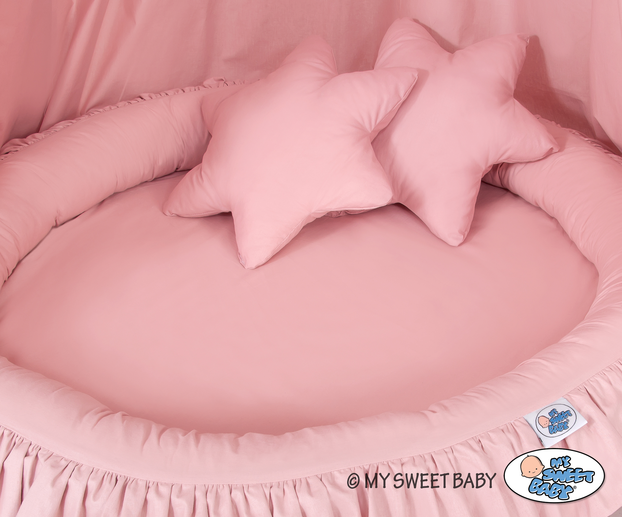 Kleinbaby.nl » Klamboesluier » Ensemble: Klamboe + Nest + Kussens » Klamboe met Nest met Ruche + Kussens Stofroze