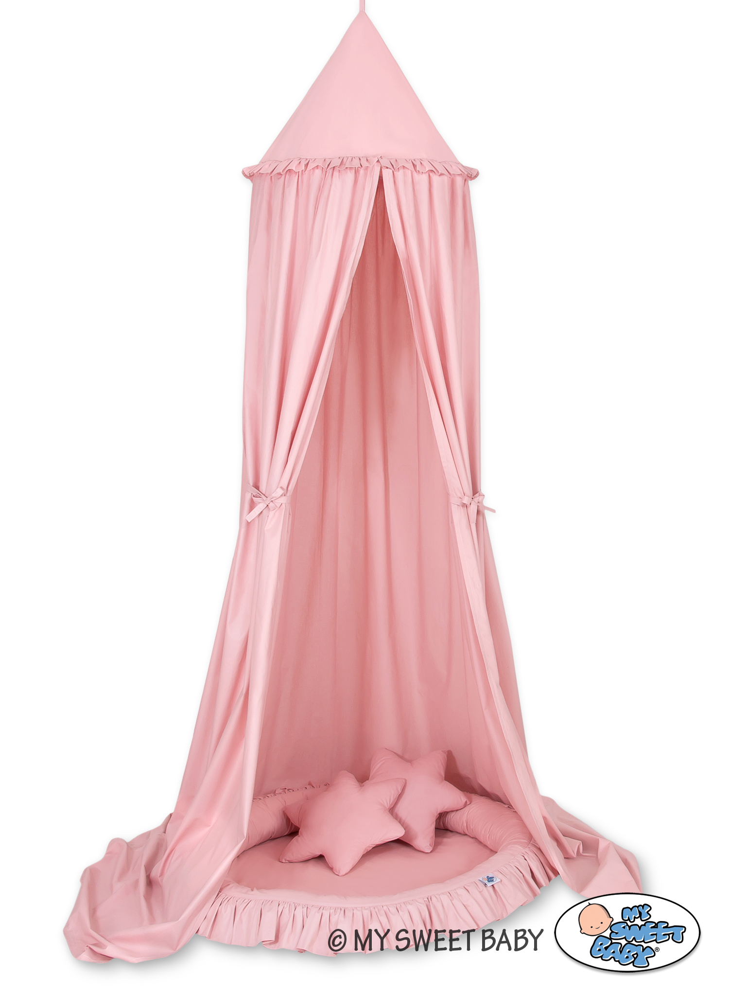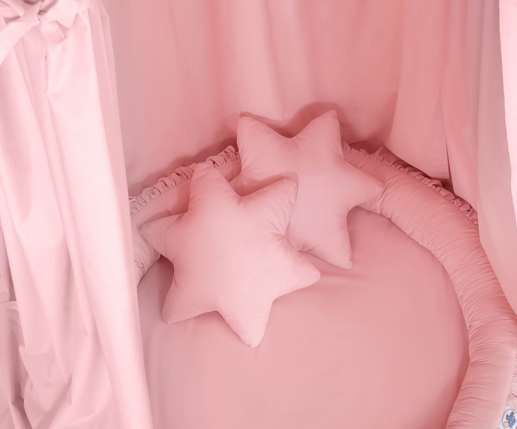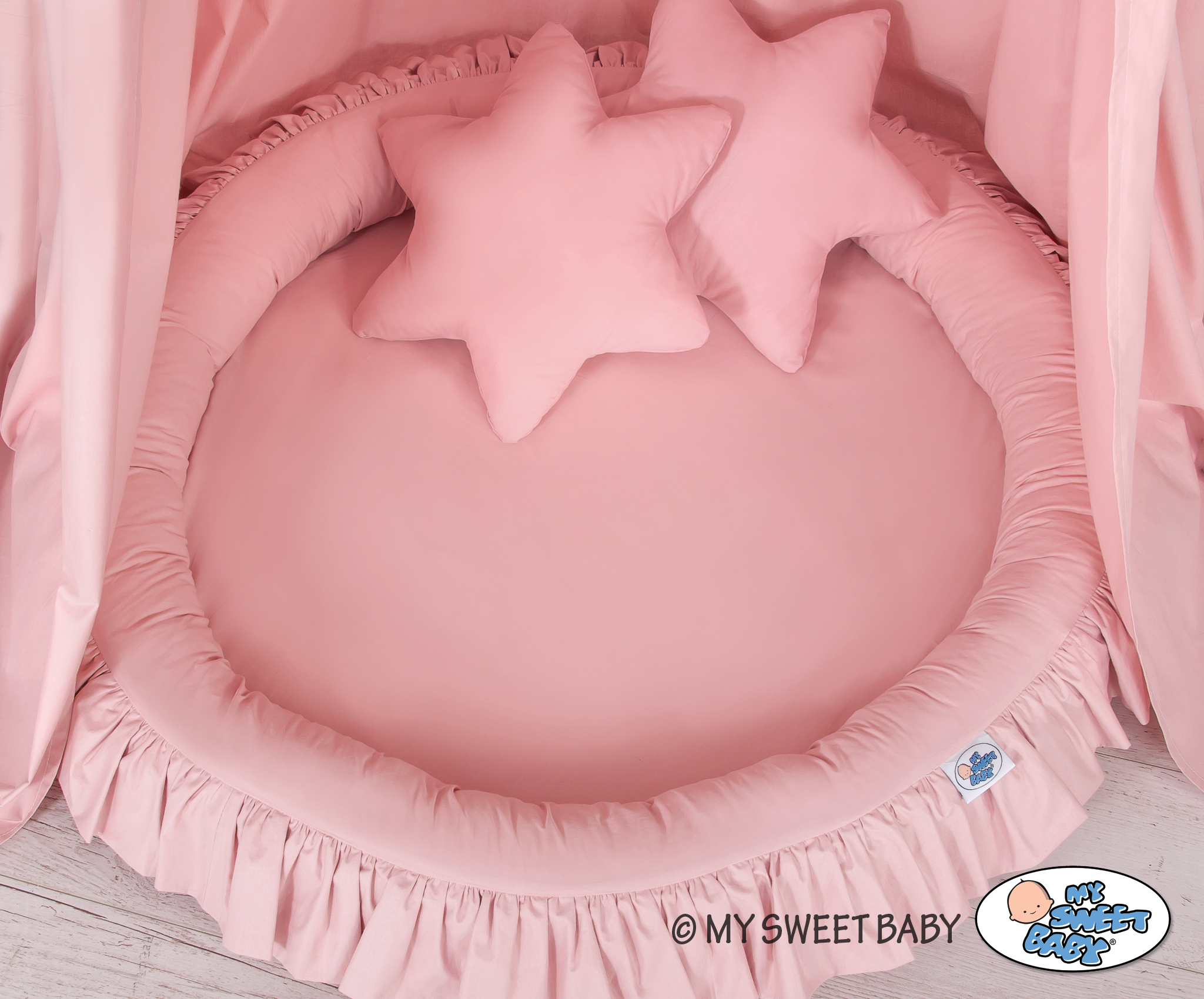 Kleinbaby.nl » Klamboesluier » Ensemble: Klamboe + Nest + Kussens » Klamboe met Nest met Ruche + Kussens Stofroze