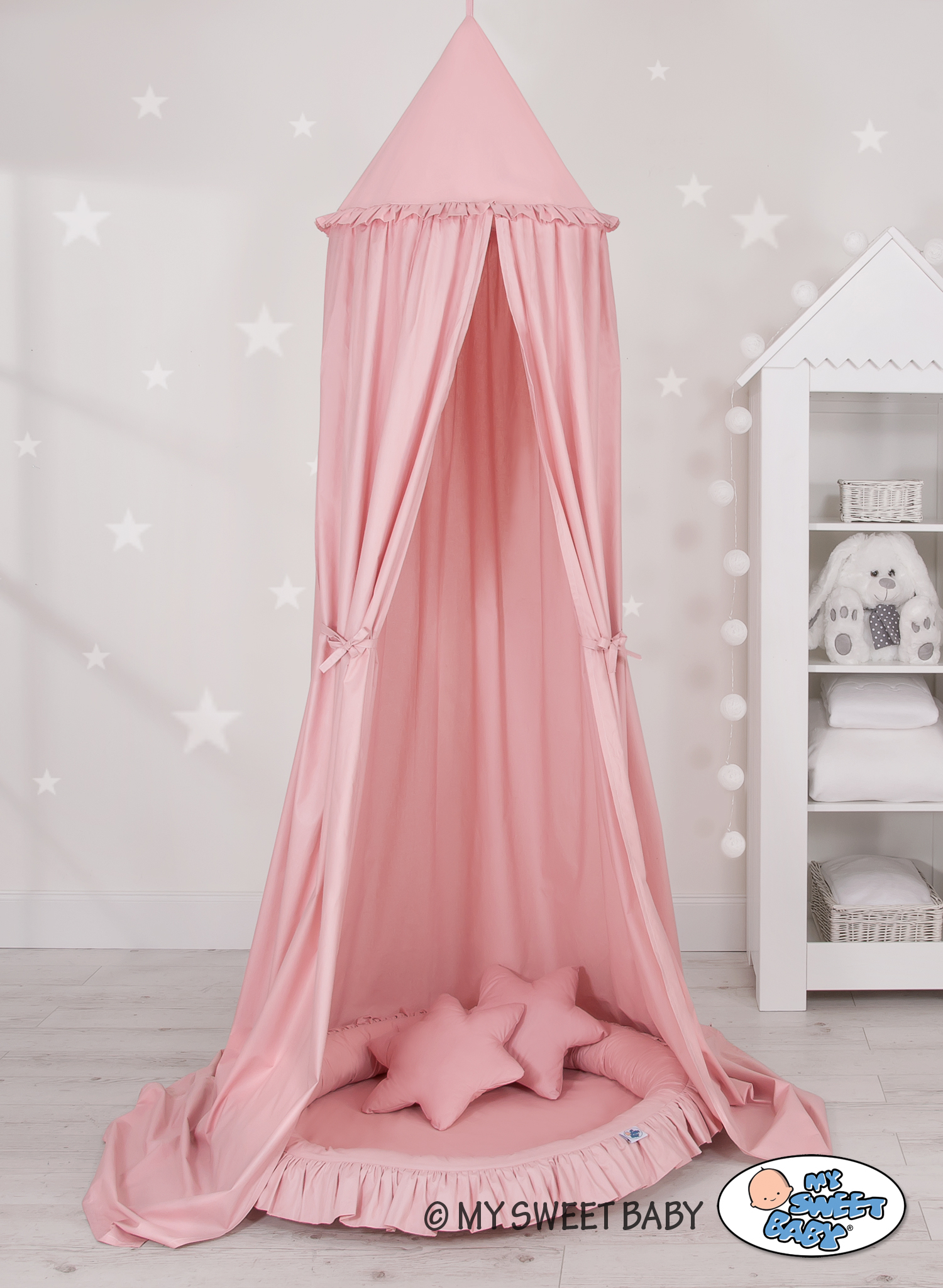 Ensemble: Hangende Luifel + Nest met Ruche + Decoratieve Kussens - Sterren - 2 st