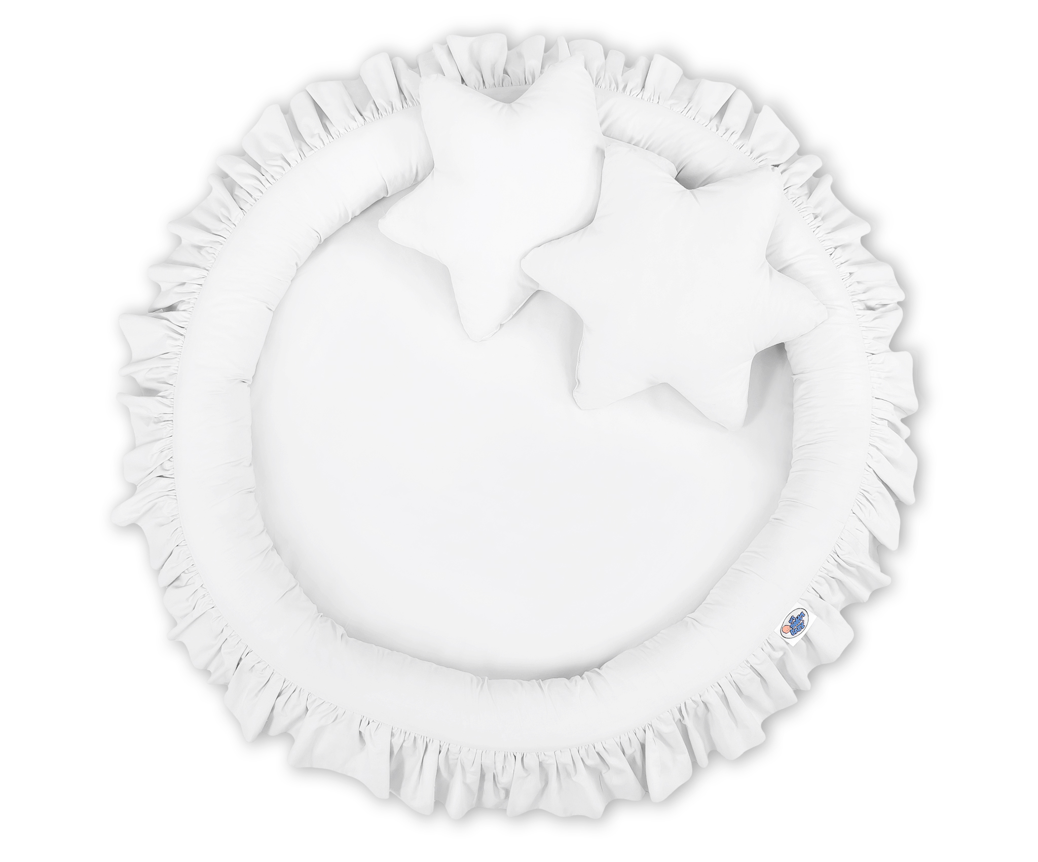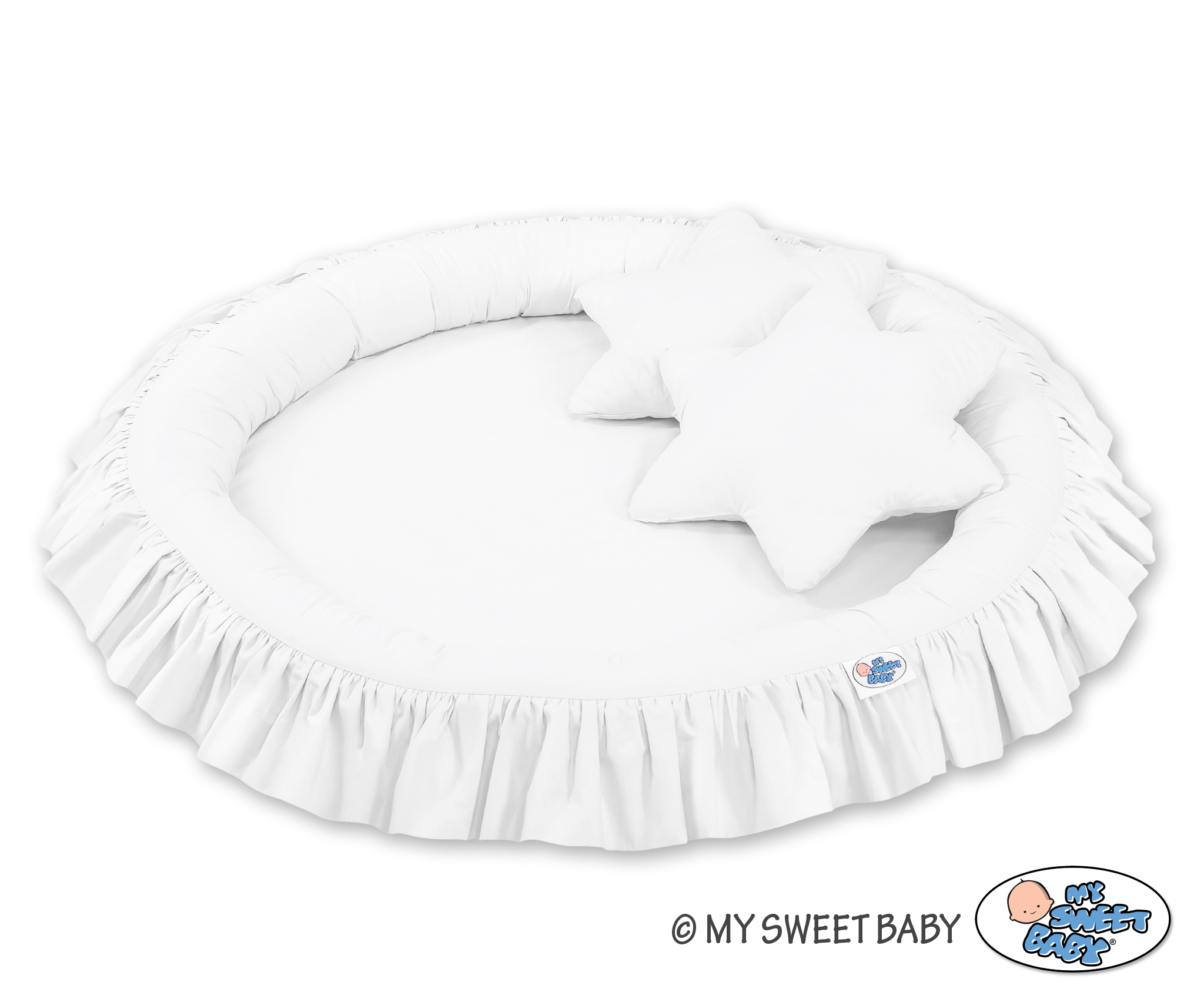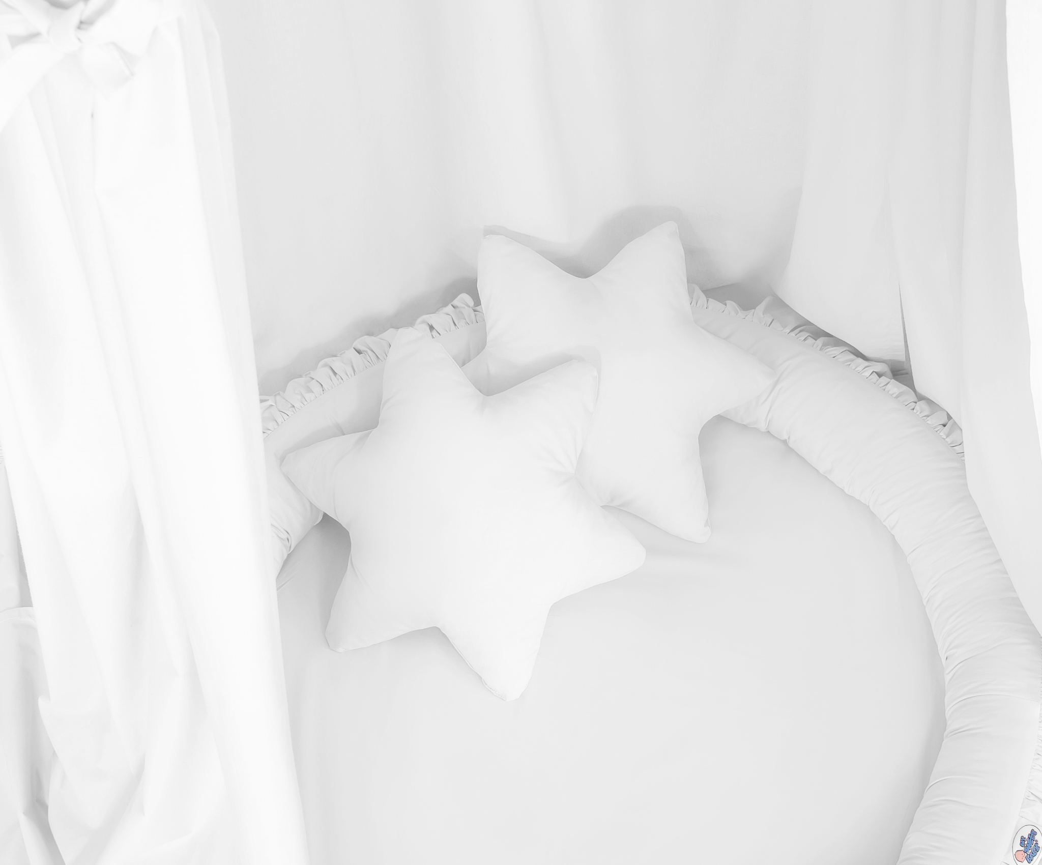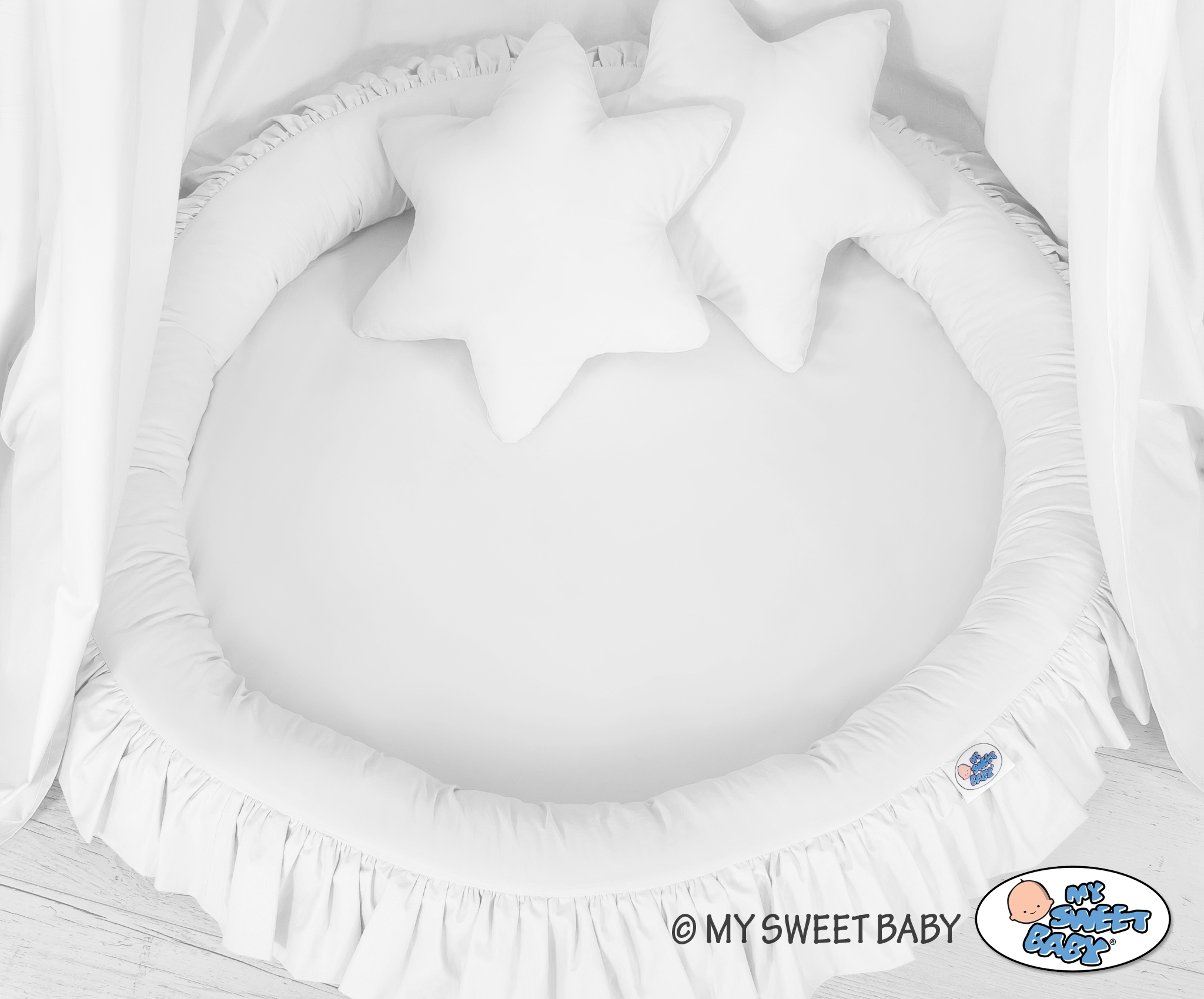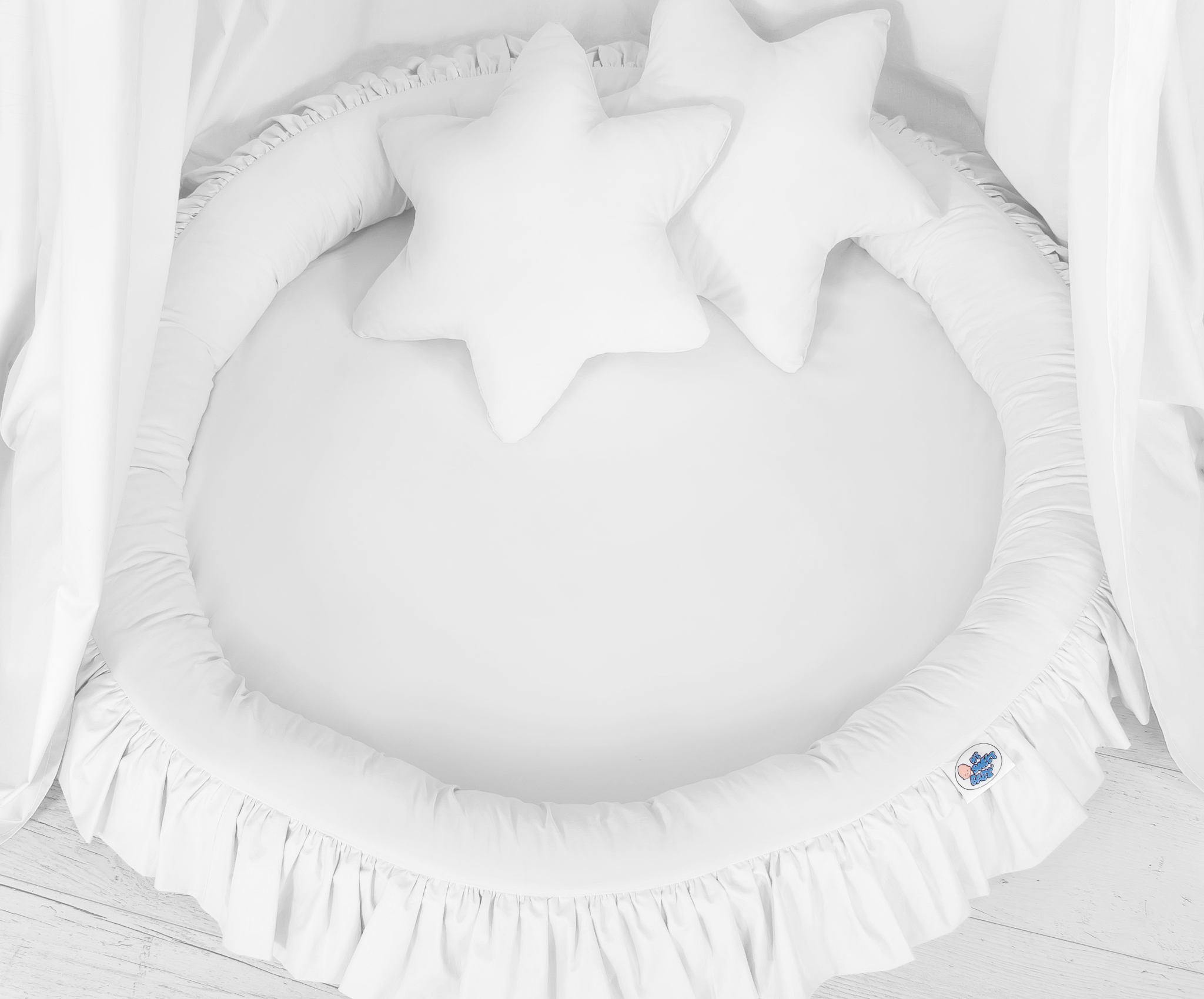 Kleinbaby.nl » Klamboesluier » Ensemble: Klamboe + Nest + Kussens » Klamboe met Nest met Ruche + Kussens Wit