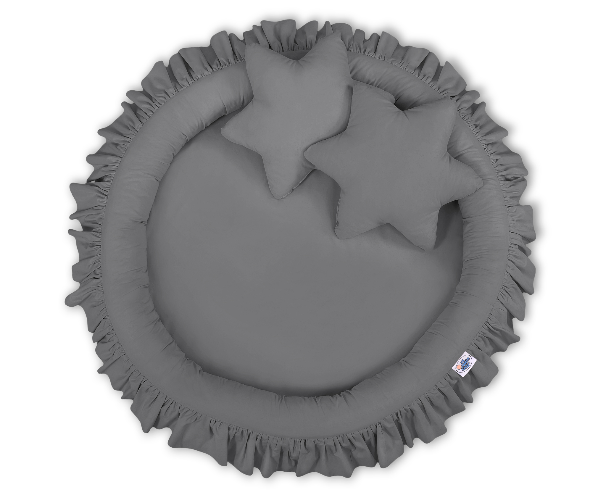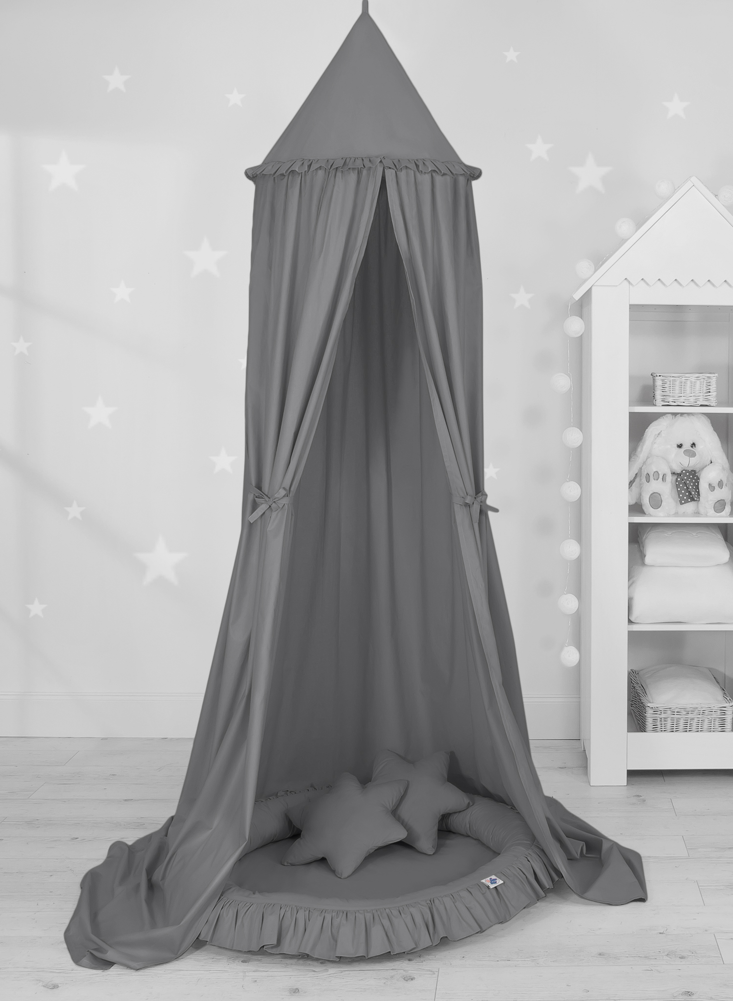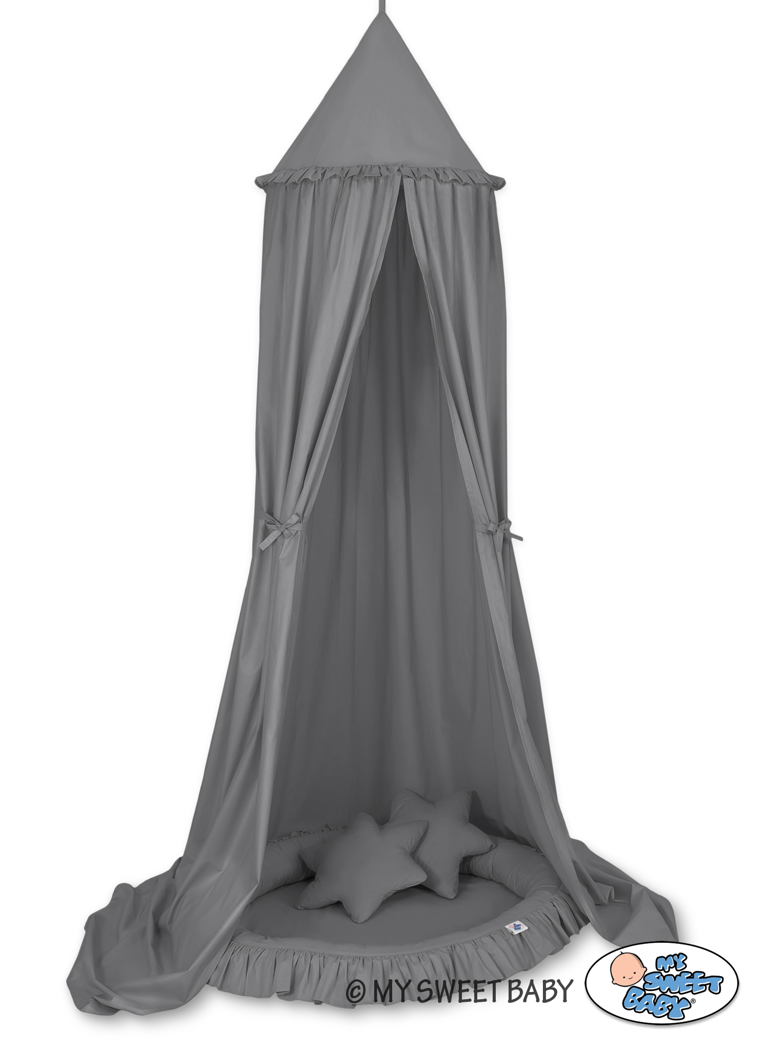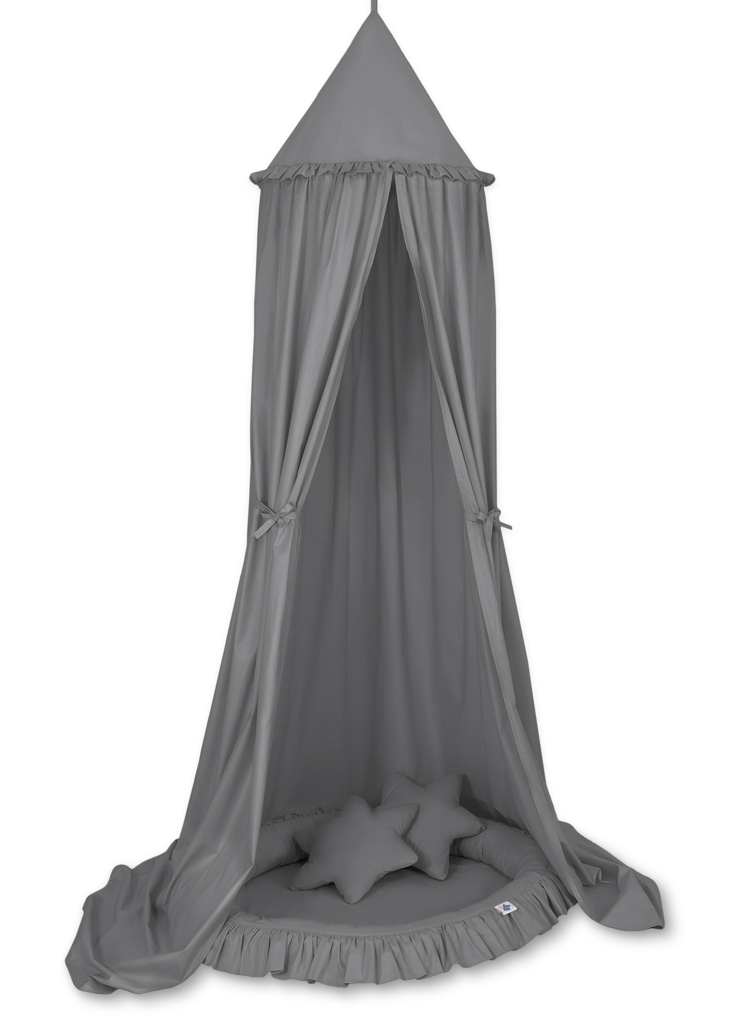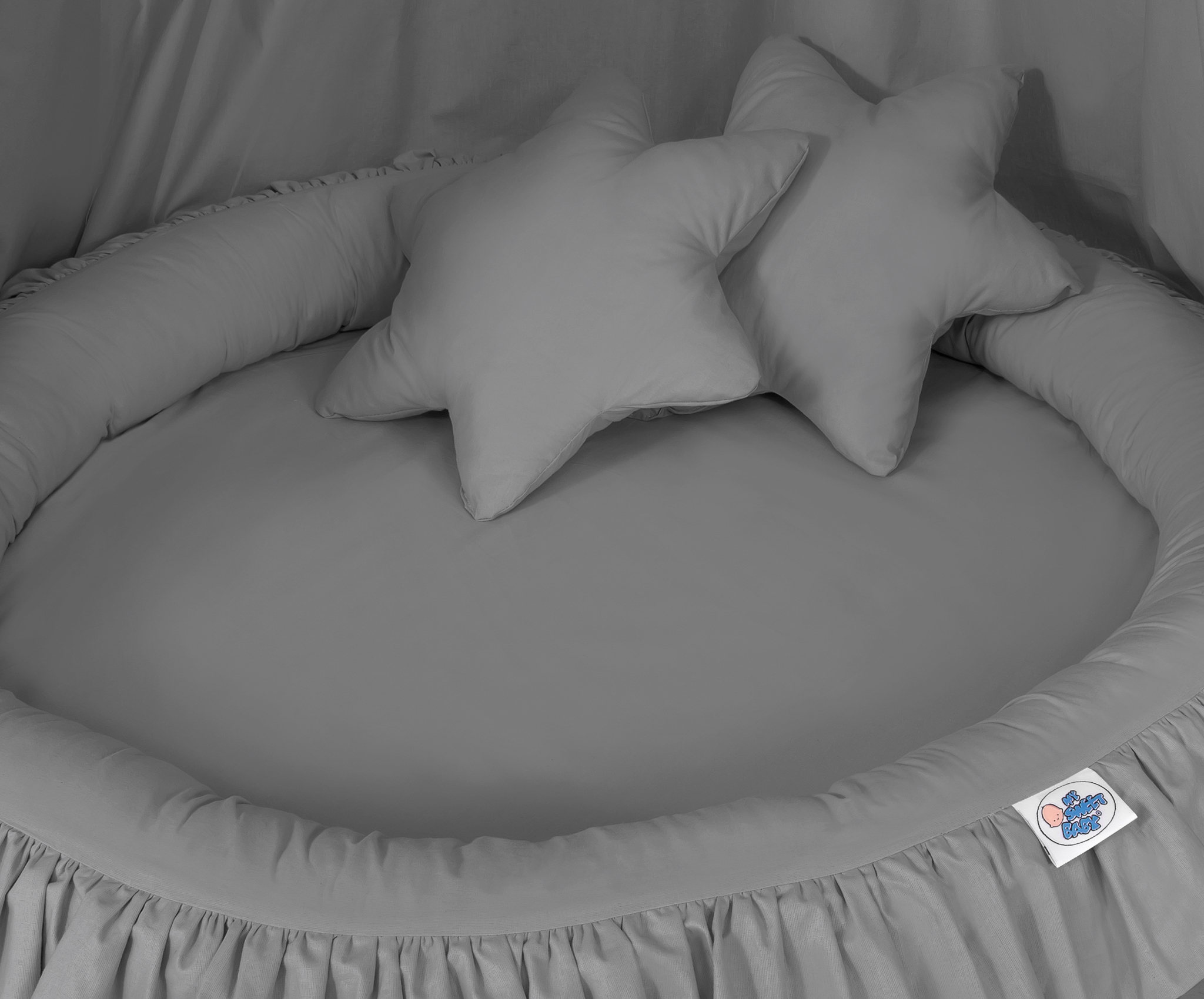 Kleinbaby.nl » Klamboesluier » Ensemble: Klamboe + Nest + Kussens » Klamboe met Nest met Volant + Kussens Antraciet voor Babykamer