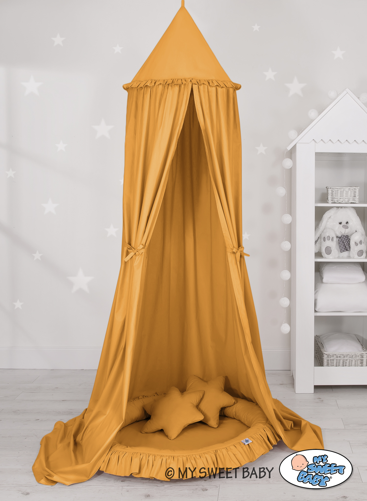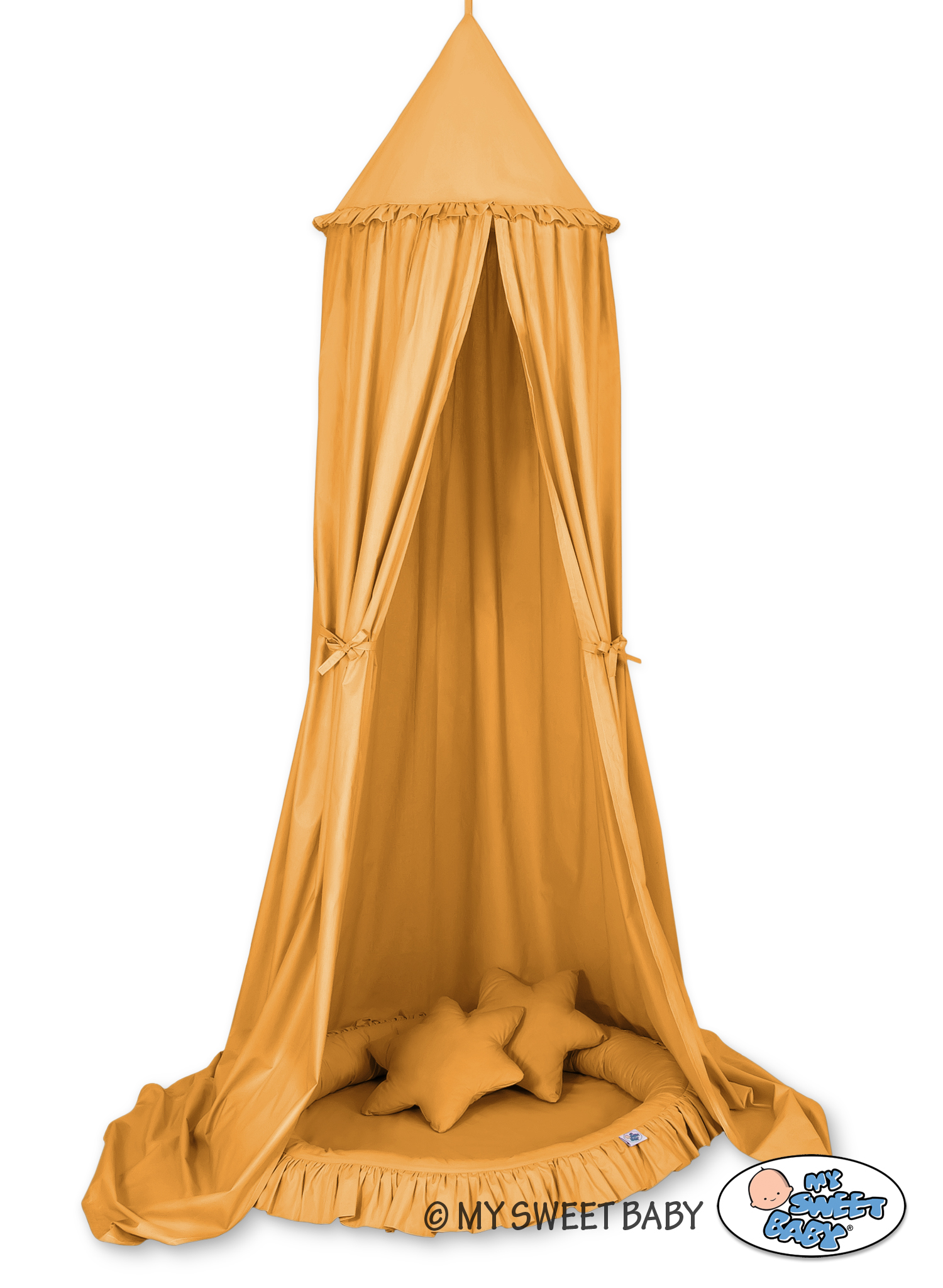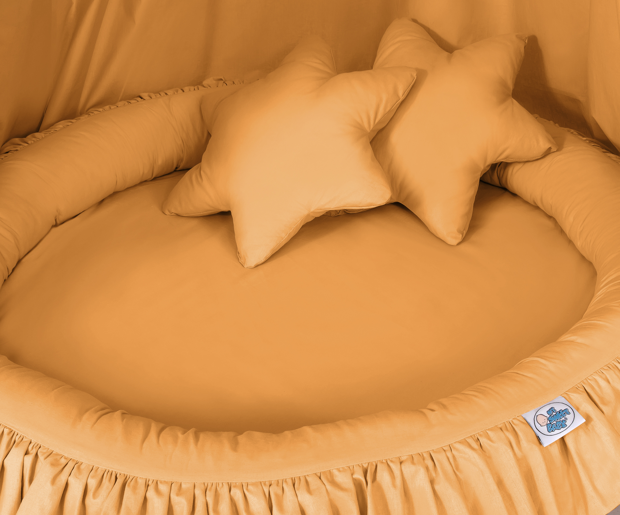 Een lange, hangende luifel van katoen. Een prachtig element in de kinderkamer. Het kan gebruikt worden als unieke decoratie van een ledikant, maar het kan eveneens een prachtige plek vormen om in te spelen. Hang de luifel over het ledikant en bescherm je baby tegen te veel licht en lawaai, het creëert tevens een knusse en veilige plek om in te rusten. De luifel kan gemakkelijk bevestigd worden aan het plafond. De lengte van 260 cm maakt het mogelijk om de uiteinden op de vloer te leggen. Dit creëert een perfecte schuilplaats en speelplek voor oudere kinderen. De luifel is gemaakt van Oekotex-gecertificeerd 100% katoen. Aan de zijkanten zitten praktische linten om de luifel vast te binden en er een prachtige tent van te maken. De rand aan de bovenkant kan worden verwijderd. De stof kan gewassen worden op 30 graden. In combinatie met het prachtige nest wordt het een perfecte plaats om plezier te maken. De zachte randen bieden een veilige omgeving voor de baby. De rand is gevuld met een gecertificeerde, niet-allergene vulling van Eco Fillball-vezels. Deze is zacht, donzig en zorgt voor een goede luchtcirculatie. De bodem van het babynest is gemaakt van een modern, anti-allergie, gecertificeerd materiaal. De bodem kan afgenomen en gewassen worden op 30 graden.