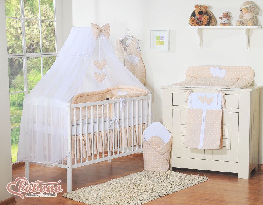 Kleinbaby.nl » Beddengoed voor Ledikant » Beddengoed Set Collectie Harten » Klamboe - Harten » Klamboe van Tule voor Ledikant - Harten Beige Polkaprikker Sifonki