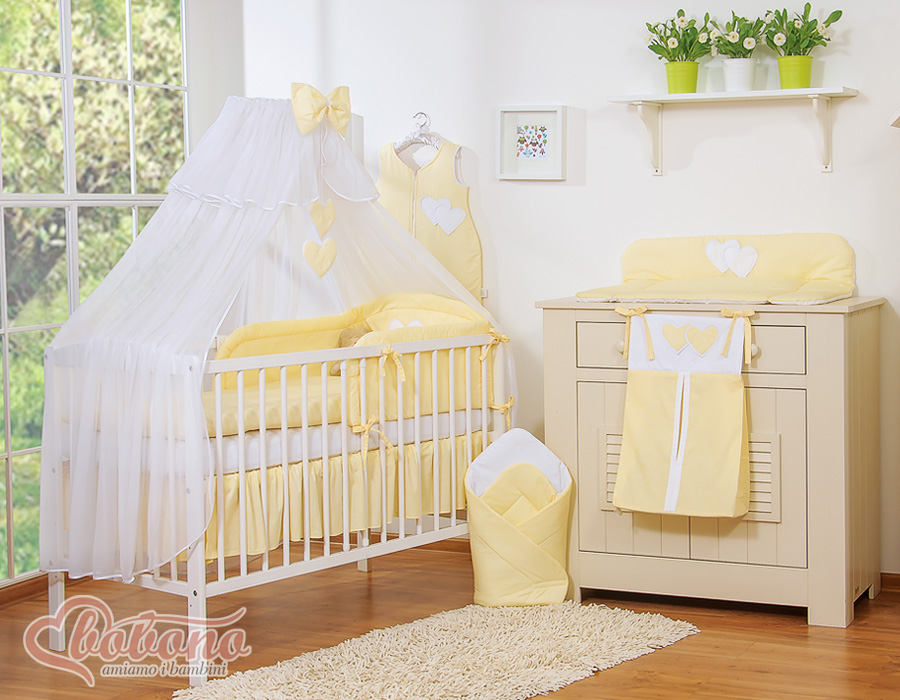 Kleinbaby.nl » Beddengoed voor Ledikant » Beddengoed Set Collectie Harten » Klamboe - Harten » Klamboe van Tule voor Ledikant - Harten Geel Snijder Sifonki