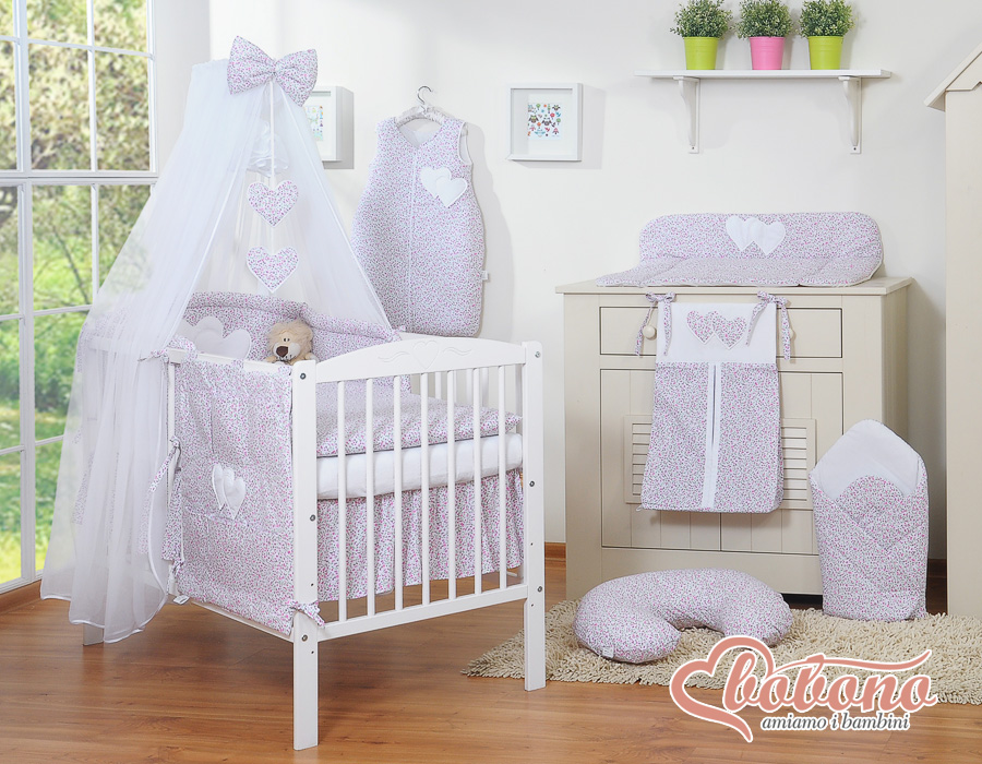 Kleinbaby.nl » Beddengoed voor Ledikant » Beddengoed Set Collectie Harten » Klamboe - Harten » Klamboe van Tule voor Ledikant - Harten Roze Bloemenweide Bloemen Sifonki