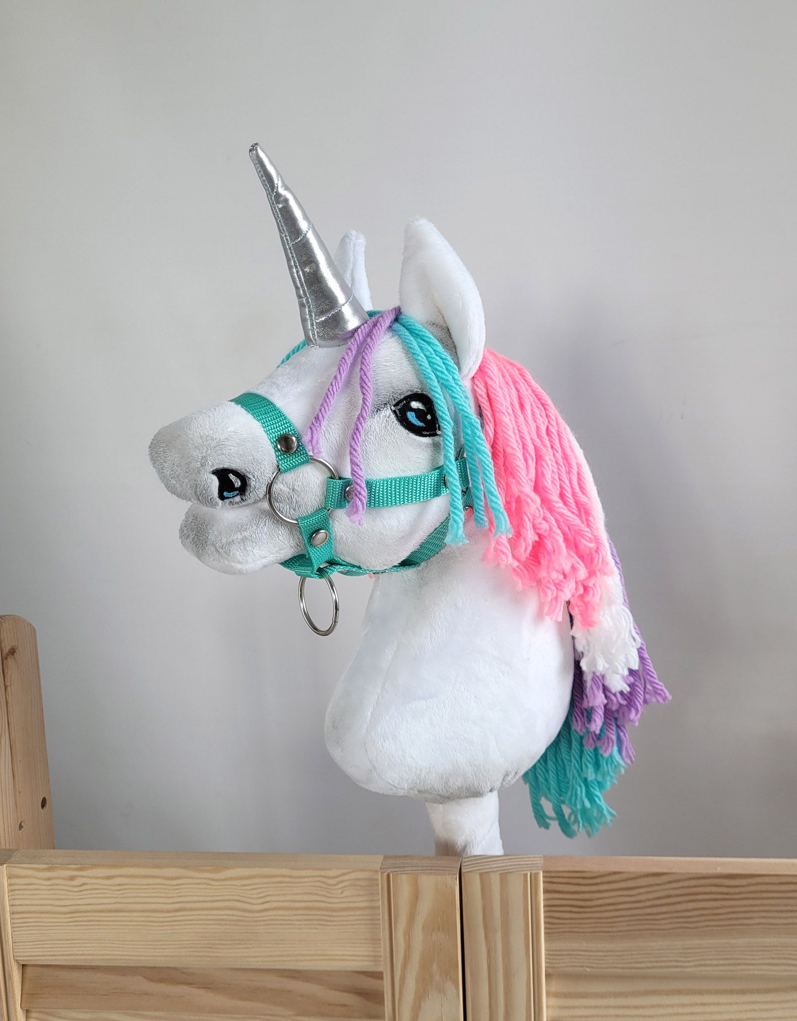 De stok waarop het eenhoorn is gemonteerd, is van eersteklas, glad, natuurlijk beukenhout. De montage is extra gecamoufleerd met minky om het hele paard er slank en speciaal uit te laten zien. Lange hardhouten stok speciaal voor dressuur en springen.