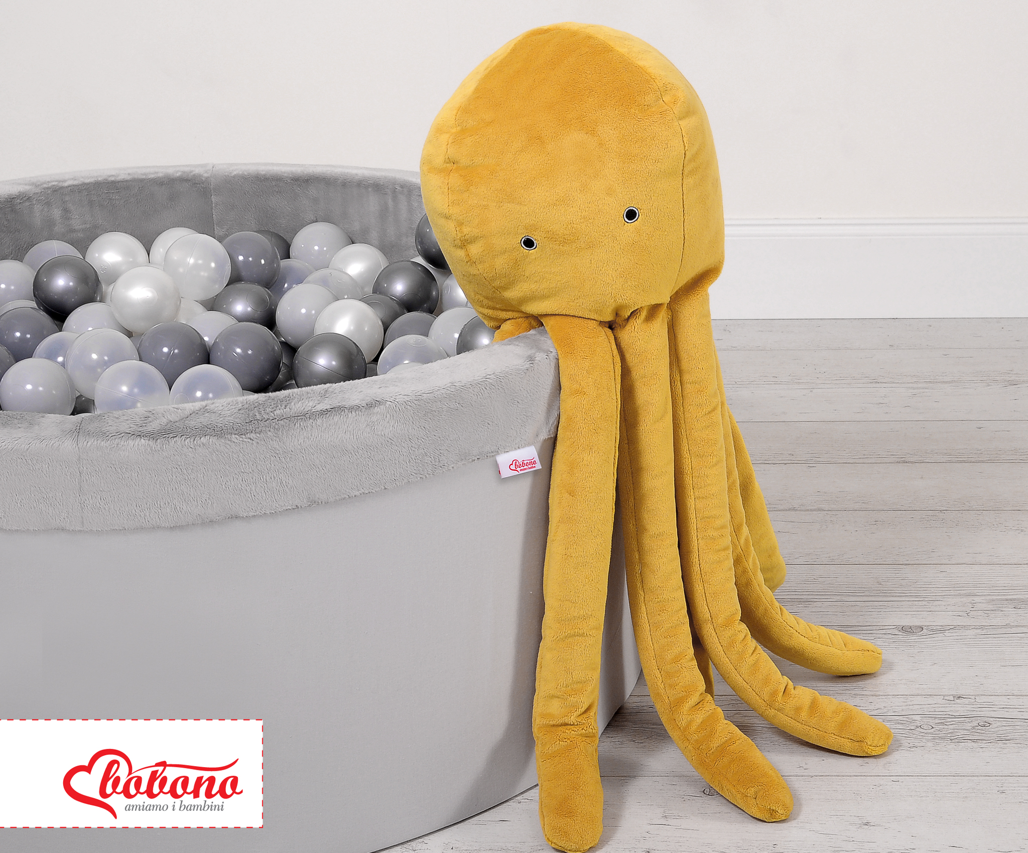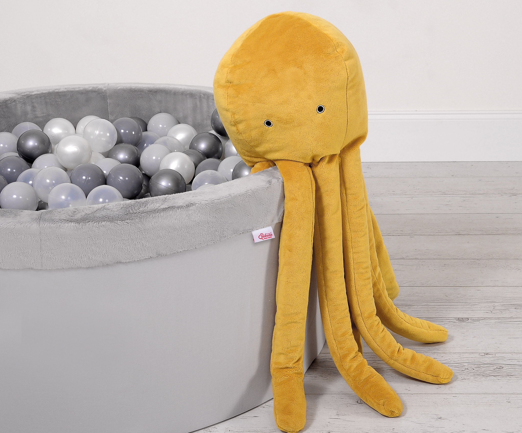 Deze leuke, knuffelige octopus is perfect voor elke baby, om te slapen en te knuffelen. De armen van de octopus zijn comfortabel vast te houden door kleine babyhandjes. De octopus is perfect veilig voor baby's vanaf de geboorte. Met een zacht rammelend geluid trekt het de aandacht van de baby. Gemaakt van zacht aanvoelend, donzig minky fleece. De vulling van het kussen bestaat uit Eco Fillball-gecertificeerde Siliconeballetjes - "kunstmatige dons" voor kussens - de vulling zorgt voor een goede luchtcirculatie en lighouding voor de baby.