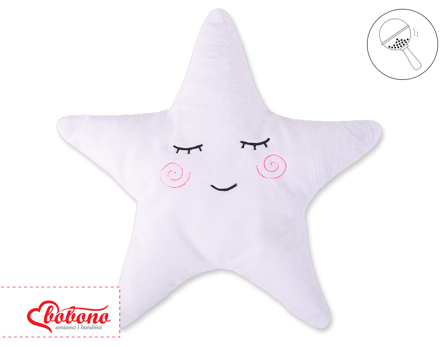 Dit leuke knuffelkussen is perfect voor elke baby, om te slapen en te knuffelen. De armen van de Little Star zijn comfortabel vast te houden door kleine babyhandjes. Het kussen kan ook dienen als interessante decoratie in de kinderkamer. Het kussen is perfect veilig voor baby's vanaf de geboorte. Gemaakt van zacht aanvoelend, donzig minky fleece. De vulling van het kussen bestaat uit Eco Fillball-gecertificeerde Siliconeballetjes - "kunstmatige dons" voor kussens - de vulling zorgt voor een goede luchtcirculatie en lighouding voor de baby.