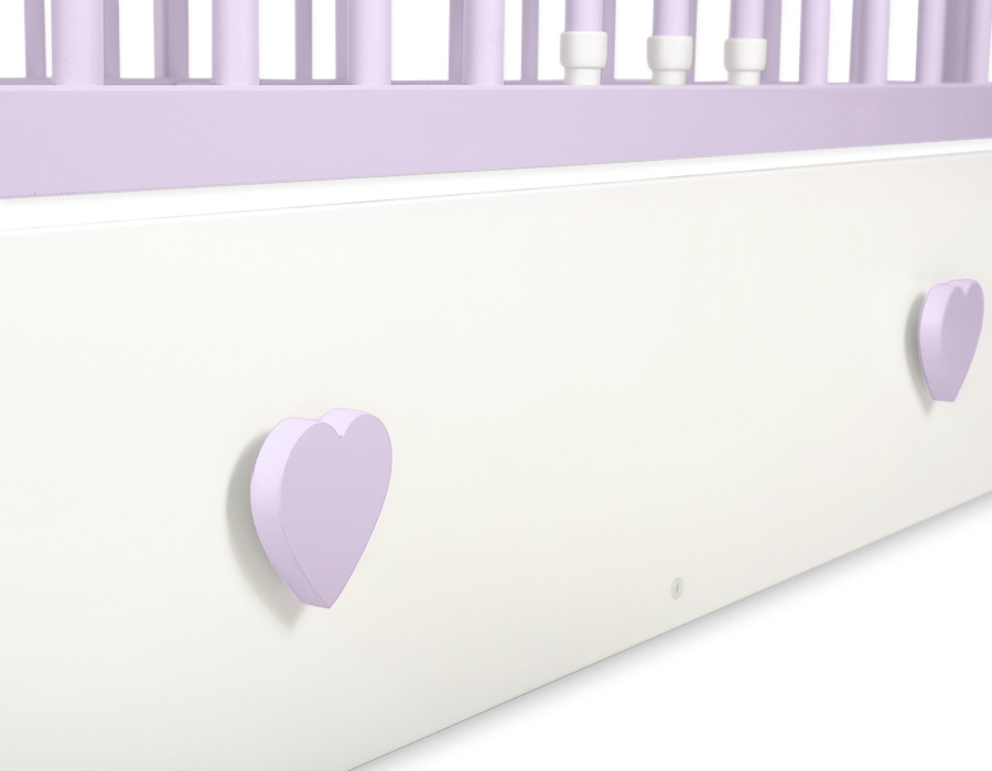 Een lade voor een ledikant van 120x60 cm met decoratieve, handgemaakte handvaten. Biedt meer ruimte voor beddengoed, speelgoed en andere benodigdheden.