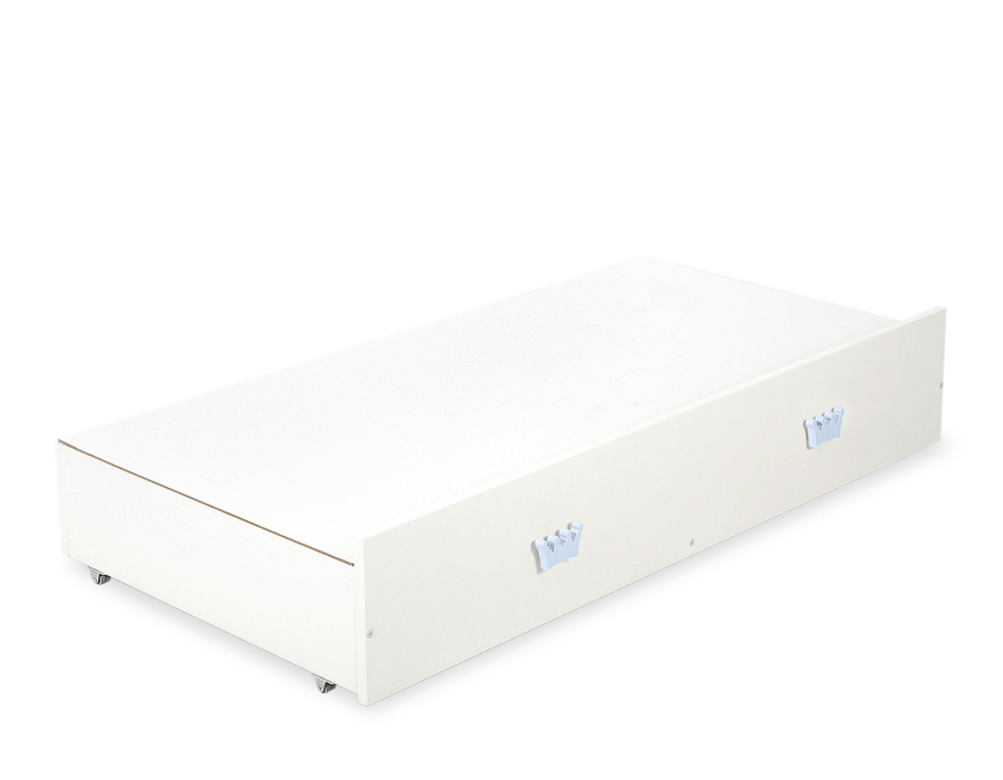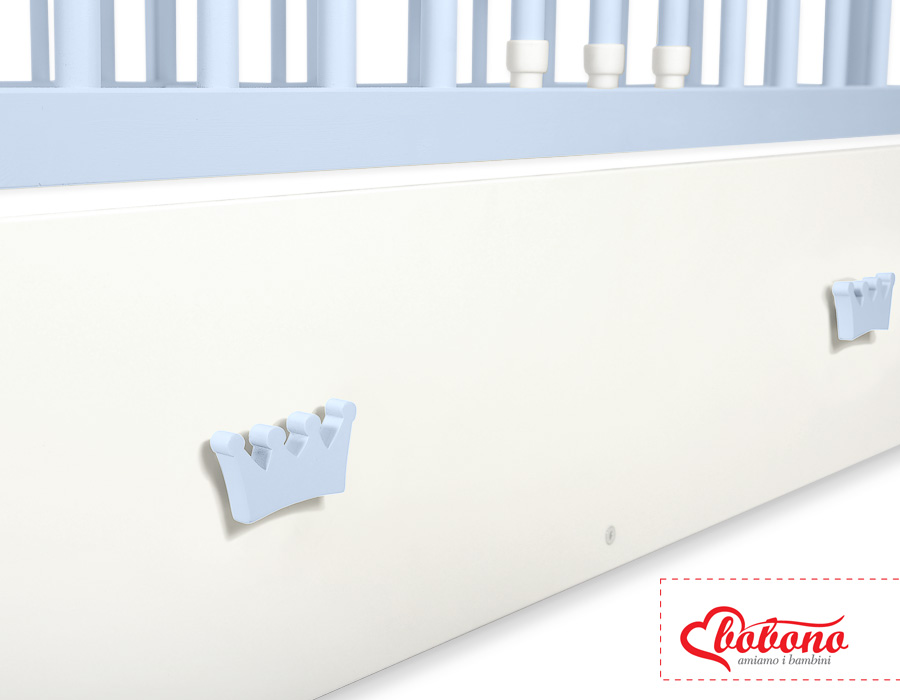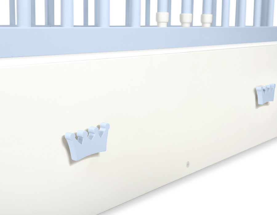 Een lade voor een ledikant van 120x60 cm met decoratieve, handgemaakte handvaten. Biedt meer ruimte voor beddengoed, speelgoed en andere benodigdheden.