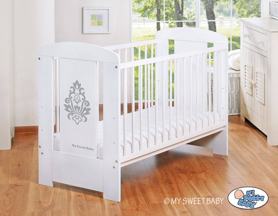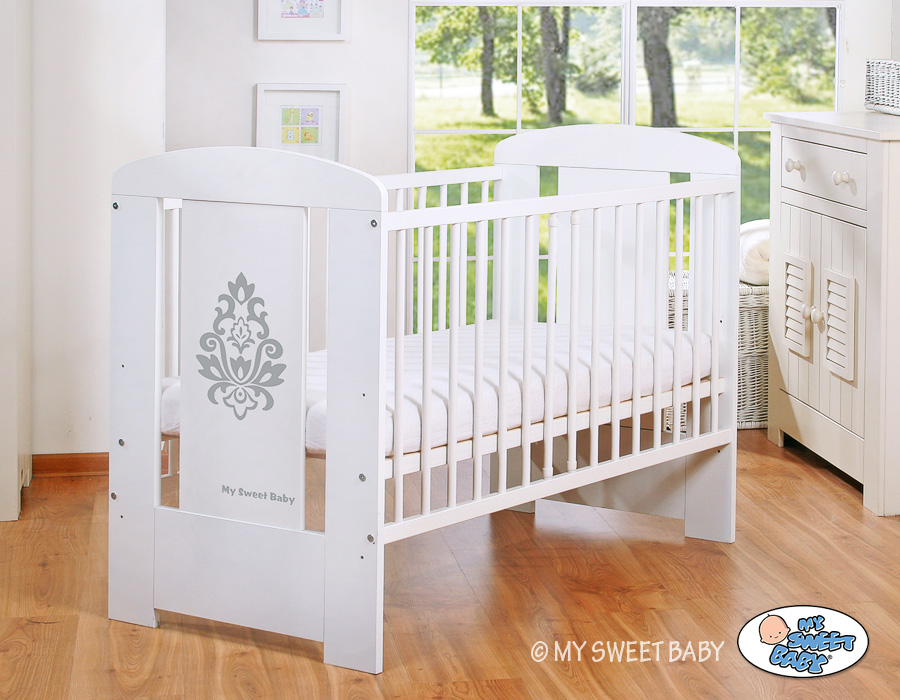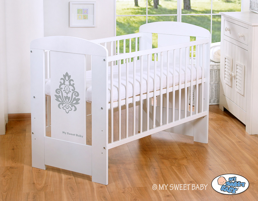 *Het matrasframe is verstelbaar in drie hoogtes - het bovenste niveau voor gemakkelijke verzorging van de baby, het middelste niveau voor gemakkelijke verzorging én veiligheid, het laagste niveau voor wanneer het kind al begint te stappen. Wanneer je de spijlen uitneemt, heeft het kind de mogelijkheid om uit het ledikant te stappen.