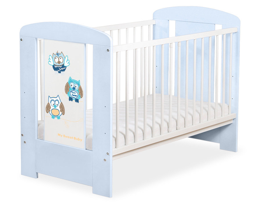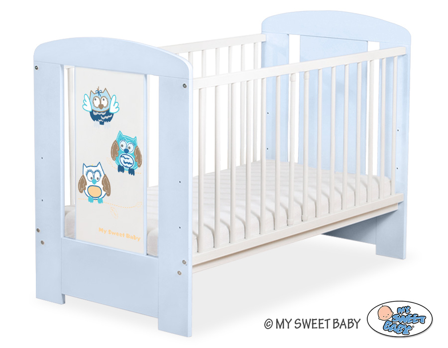 Kleinbaby.nl » Ledikanten 120x60 cm » Ledikant Collectie Owls » Ledikant 120x60 cm - Owls Bigi Zibi & Adele Blauw Gelukkige Uilen