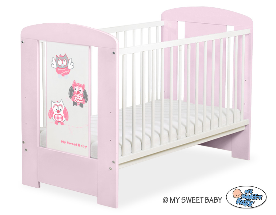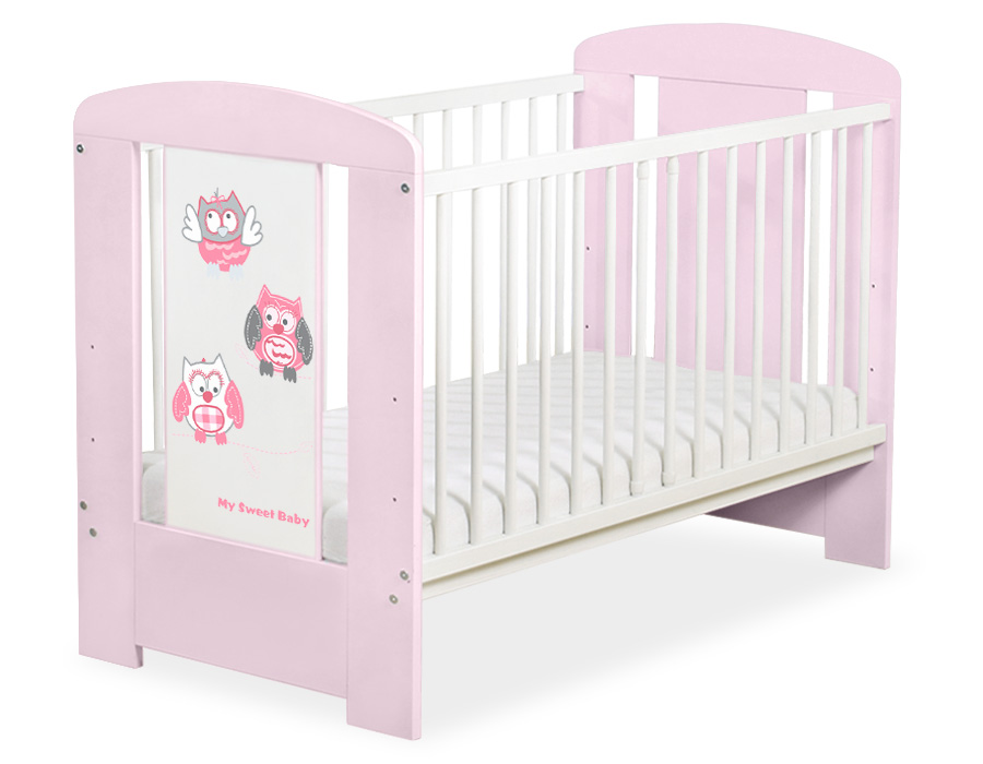 Kleinbaby.nl » Ledikanten 120x60 cm » Ledikant Collectie Owls » Ledikant 120x60 cm - Owls Bigi Zibi & Adele Roze Gelukkige Uilen