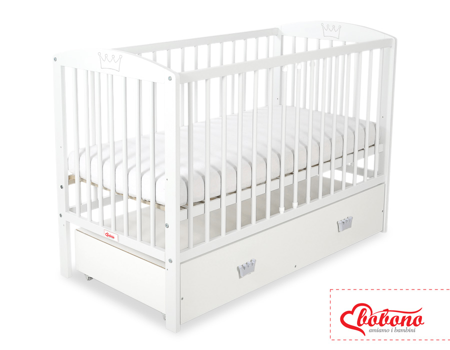 Kleinbaby.nl » Ledikanten 120x60 cm » Ledikanten 120x60cm met lades » Ledikant met Lade Collectie Prince / Princess » Ledikant met Lade 120x60 cm - Kroontjes - MAXI