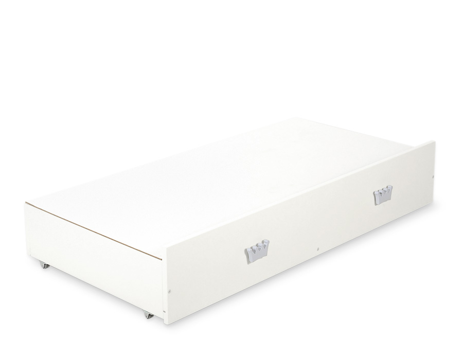 Een lade voor een ledikant van 120x60 cm met decoratieve, handgemaakte handvaten. Biedt meer ruimte voor beddengoed, speelgoed en andere benodigdheden.