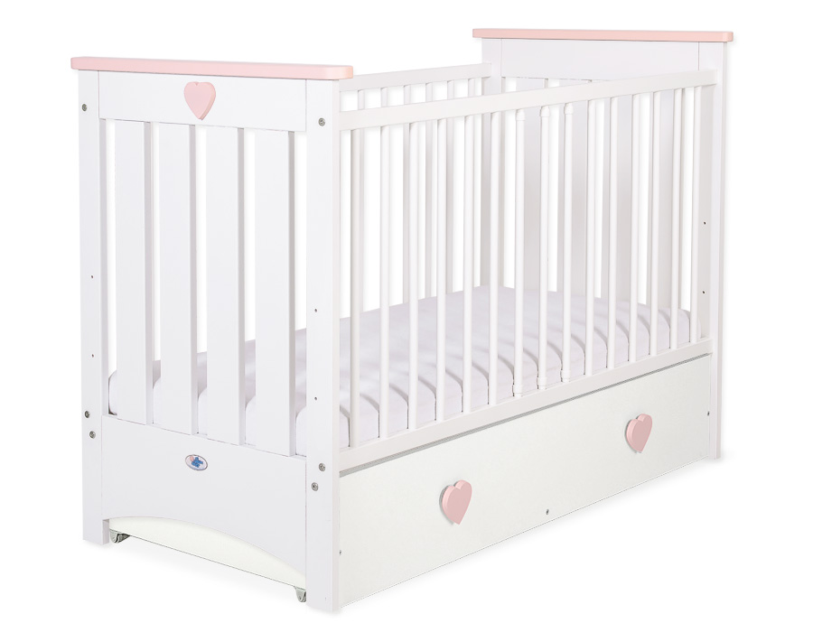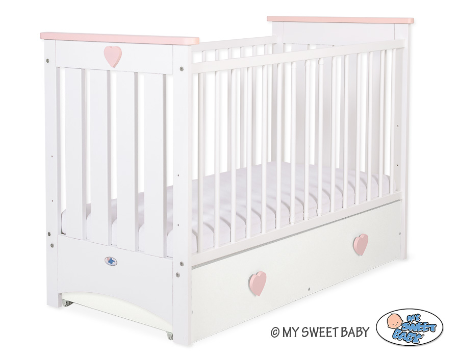 Kleinbaby.nl » Ledikanten 120x60 cm » Ledikanten 120x60cm met lades » Ledikant met Lade Collectie Lorenzo Wit » Ledikant met Lade 120x60 cm - Lorenzo III MAXI Wit Poederroze