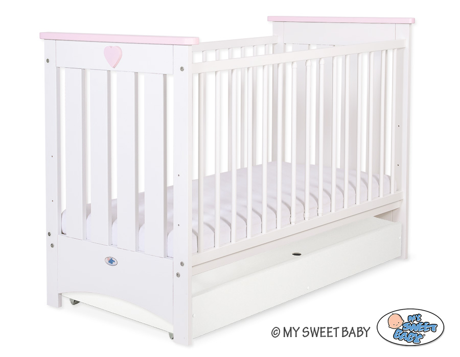 Kleinbaby.nl » Ledikanten 120x60 cm » Ledikanten 120x60cm met lades » Ledikant met Lade Collectie Lorenzo Wit » Ledikant met Lade 120x60 cm - Lorenzo III STANDARD Roze Wit