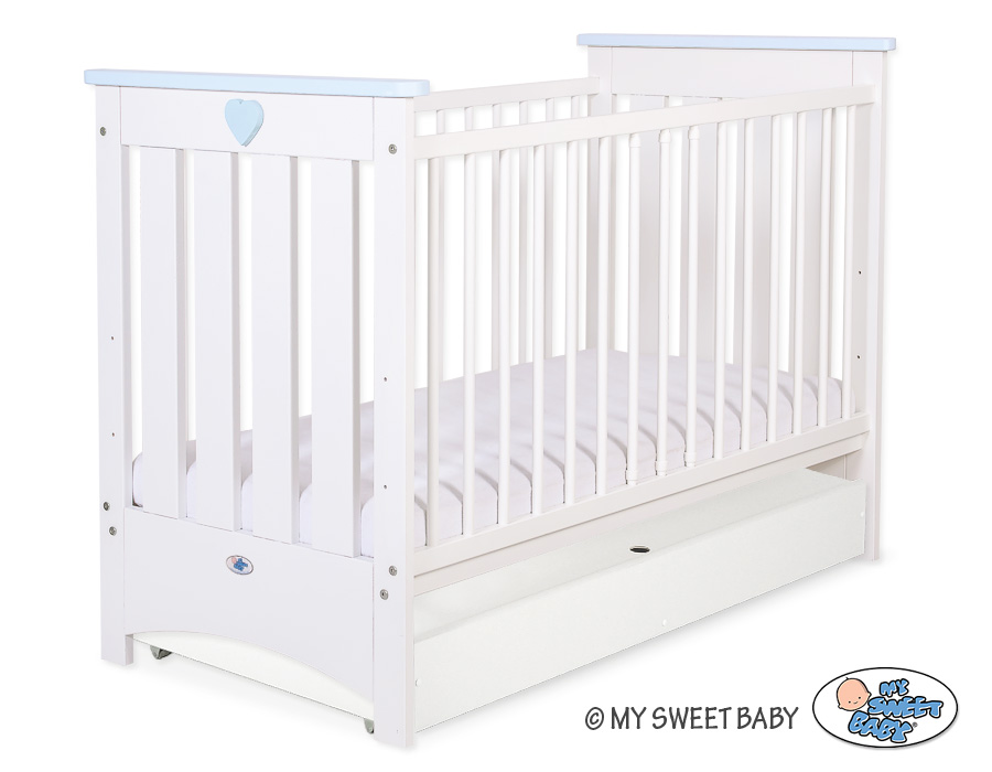 Kleinbaby.nl » Ledikanten 120x60 cm » Ledikanten 120x60cm met lades » Ledikant met Lade Collectie Lorenzo Wit » Ledikant met Lade 120x60 cm - Lorenzo III STANDARD Wit Blauw