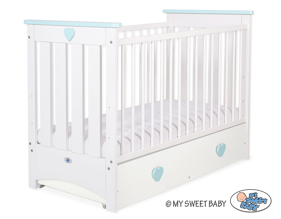 Kleinbaby.nl » Ledikanten 120x60 cm » Ledikanten 120x60cm met lades » Ledikant met Lade Collectie Lorenzo Wit » Ledikant met Lade 120x60 cm - Lorenzo MAXI Mint Wit