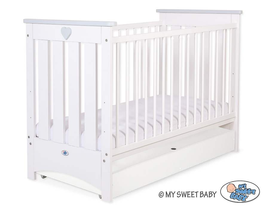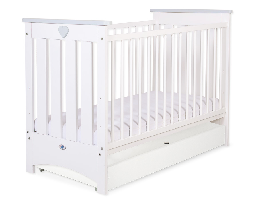 Kleinbaby.nl » Ledikanten 120x60 cm » Ledikanten 120x60cm met lades » Ledikant met Lade Collectie Lorenzo Wit » Ledikant met Lade 120x60 cm - Lorenzo STANDARD Wit Grijs