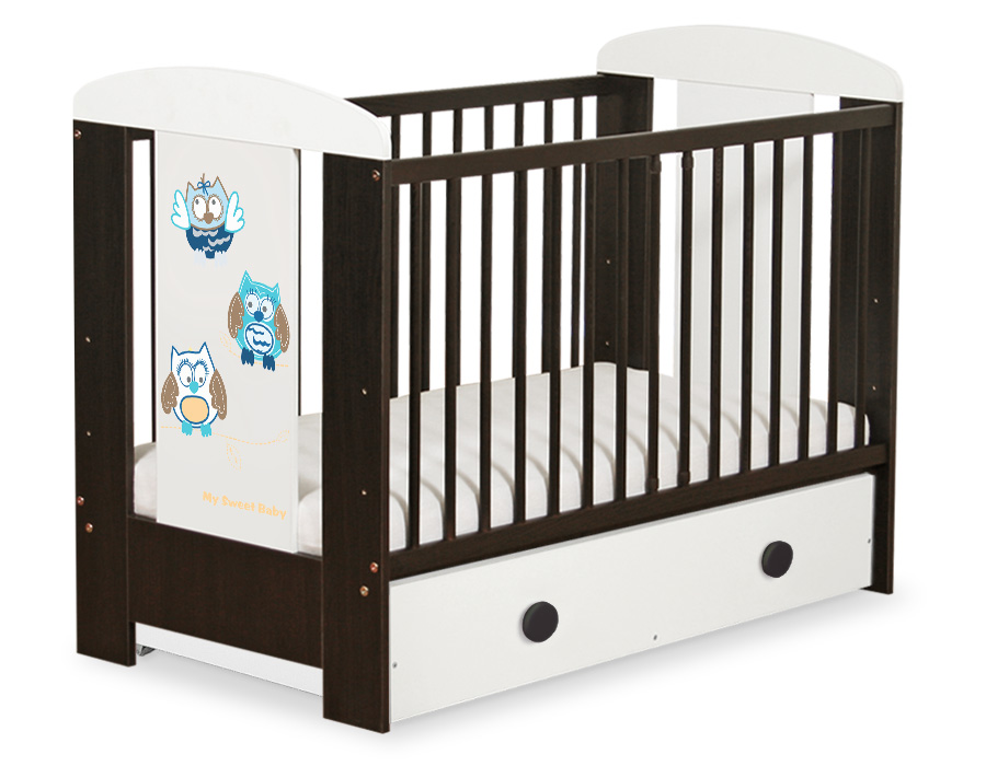 Kleinbaby.nl » Ledikanten 120x60 cm » Ledikanten 120x60cm met lades » Ledikant met Lade Collectie Owls » Ledikant met Lade 120x60 cm - Owls Bigi Zibi & Adele MAXI Gelukkige Uilen