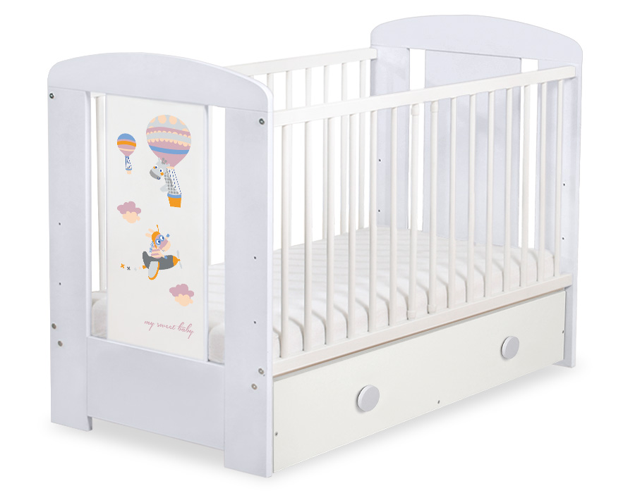 Kleinbaby.nl » Ledikanten 120x60 cm » Ledikanten 120x60cm met lades » Ledikant met Lade Collectie Happy » Ledikant met Lade Happy balloons 120x60 cm MAXI