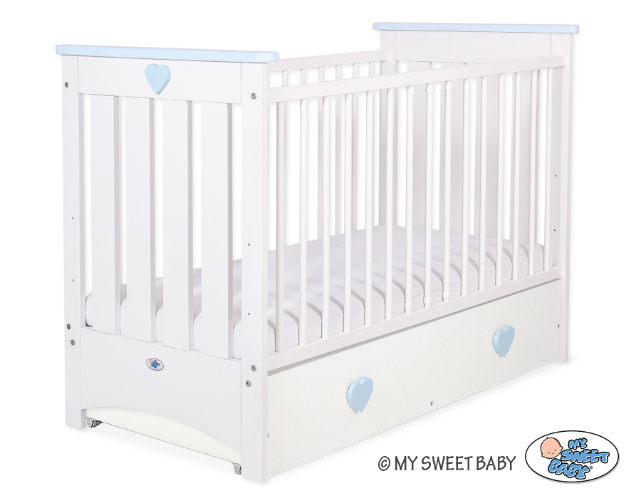Kleinbaby.nl » Ledikanten 120x60 cm » Ledikanten 120x60cm met lades » Ledikant met Lade Collectie Lorenzo Wit » Ledikant met Lade Lorenzo MAXI Wit Blauw